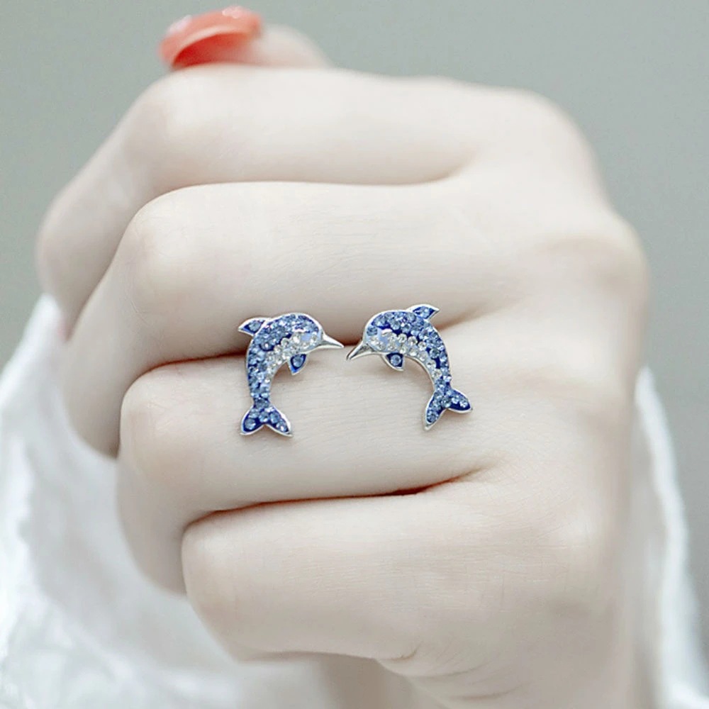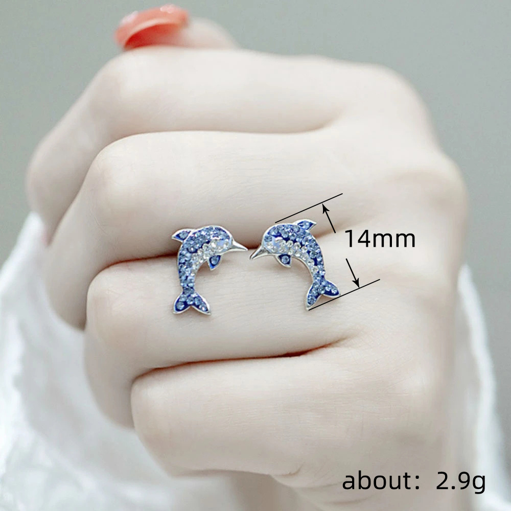 Japanese and Korean style small fresh earrings simple sweet blue dolphin earrings female hot selling jewelry wholesale