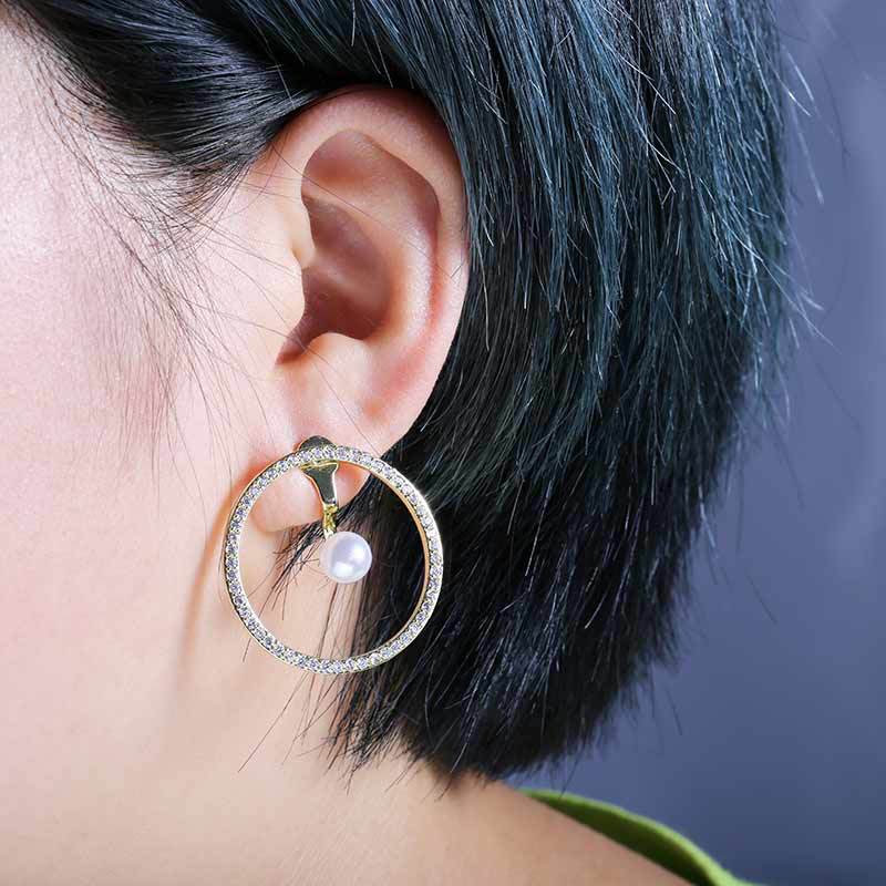 Japanese and Korean trendy earrings, creative geometric rings, zircon pearl pendant earrings, hot-selling earrings