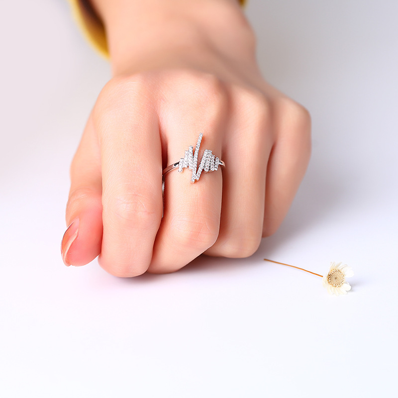 Japanese and Korean zircon ring Valentine's Day gift girls ring micro inlaid zircon heart electrocardiogram tail ring rif10