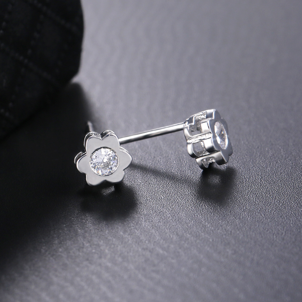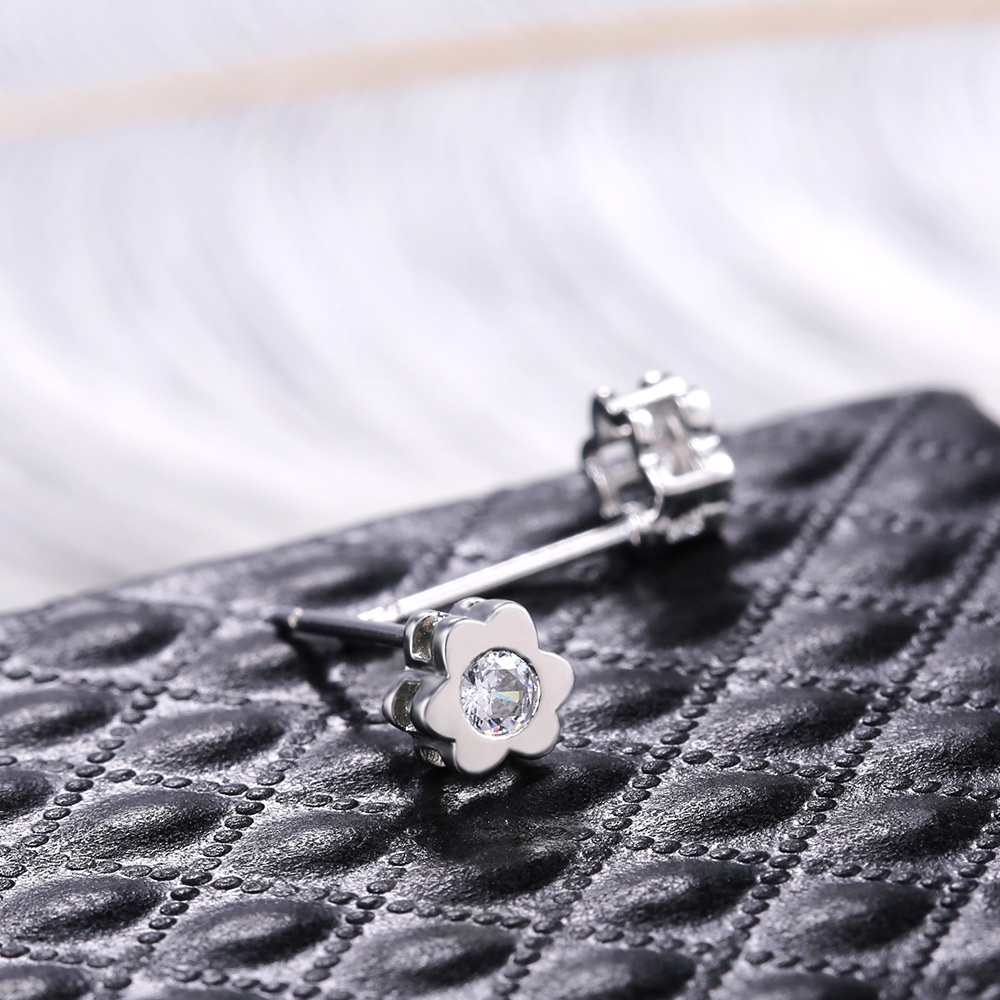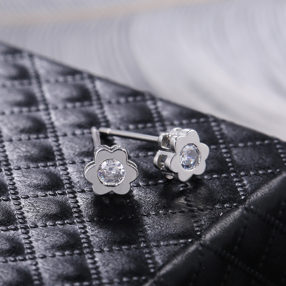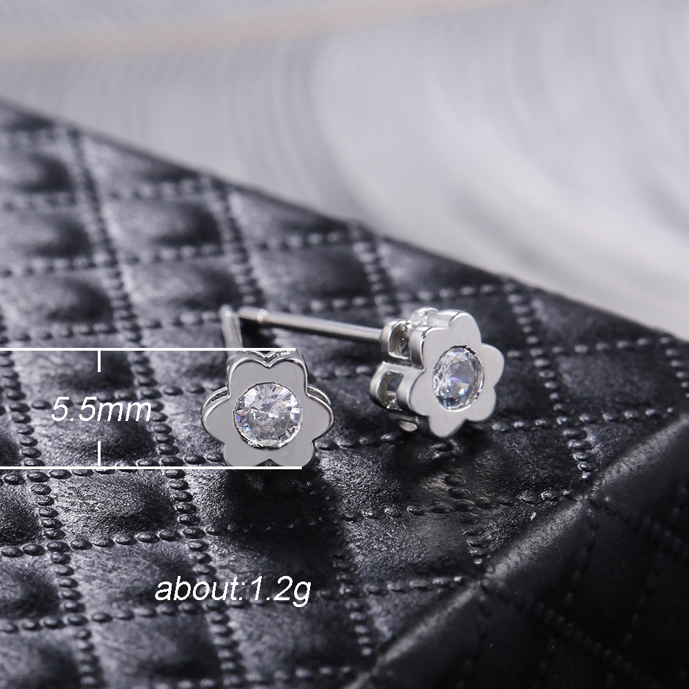 Japanese daily versatile zircon flower earrings goddess student simple matching earrings copper plated with real gold