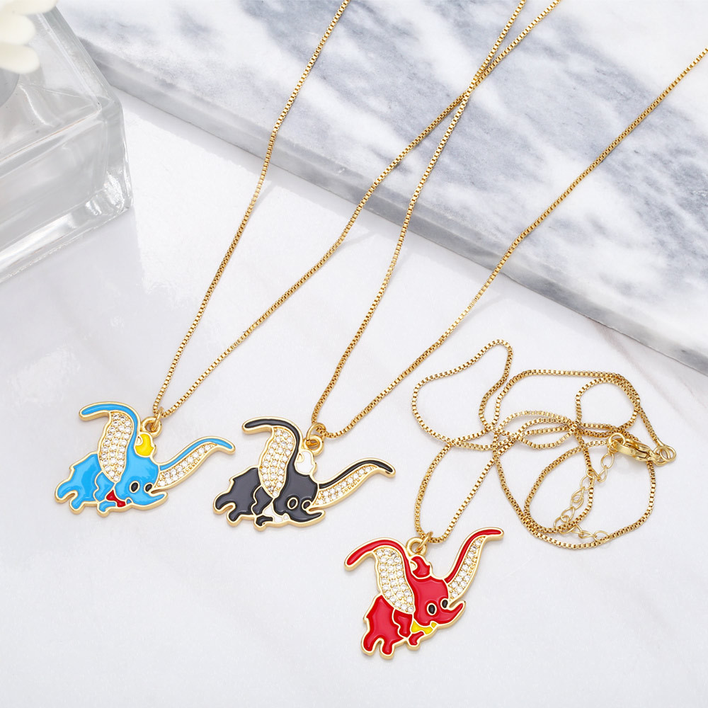 Jewelry clearance cute elephant necklace personality color oil drop diamond elephant pendant clavicle chain nkb154