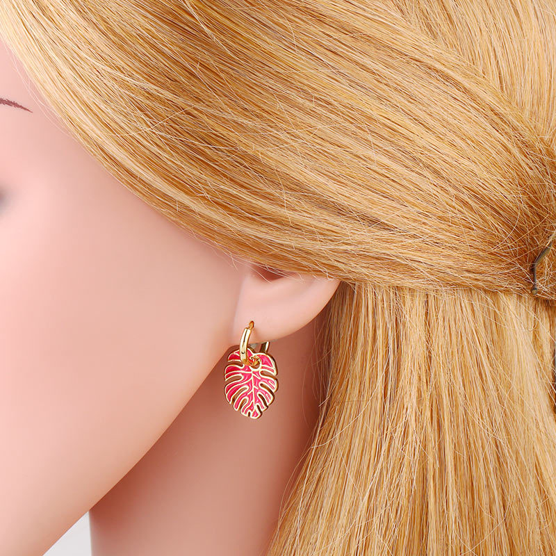 Jewelry clearance retro color oil drop leaf earrings Bohemian girl style cute leaf earrings erx93