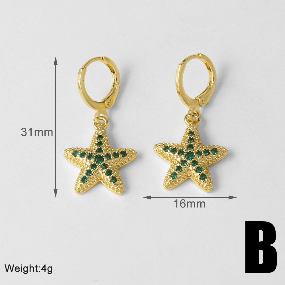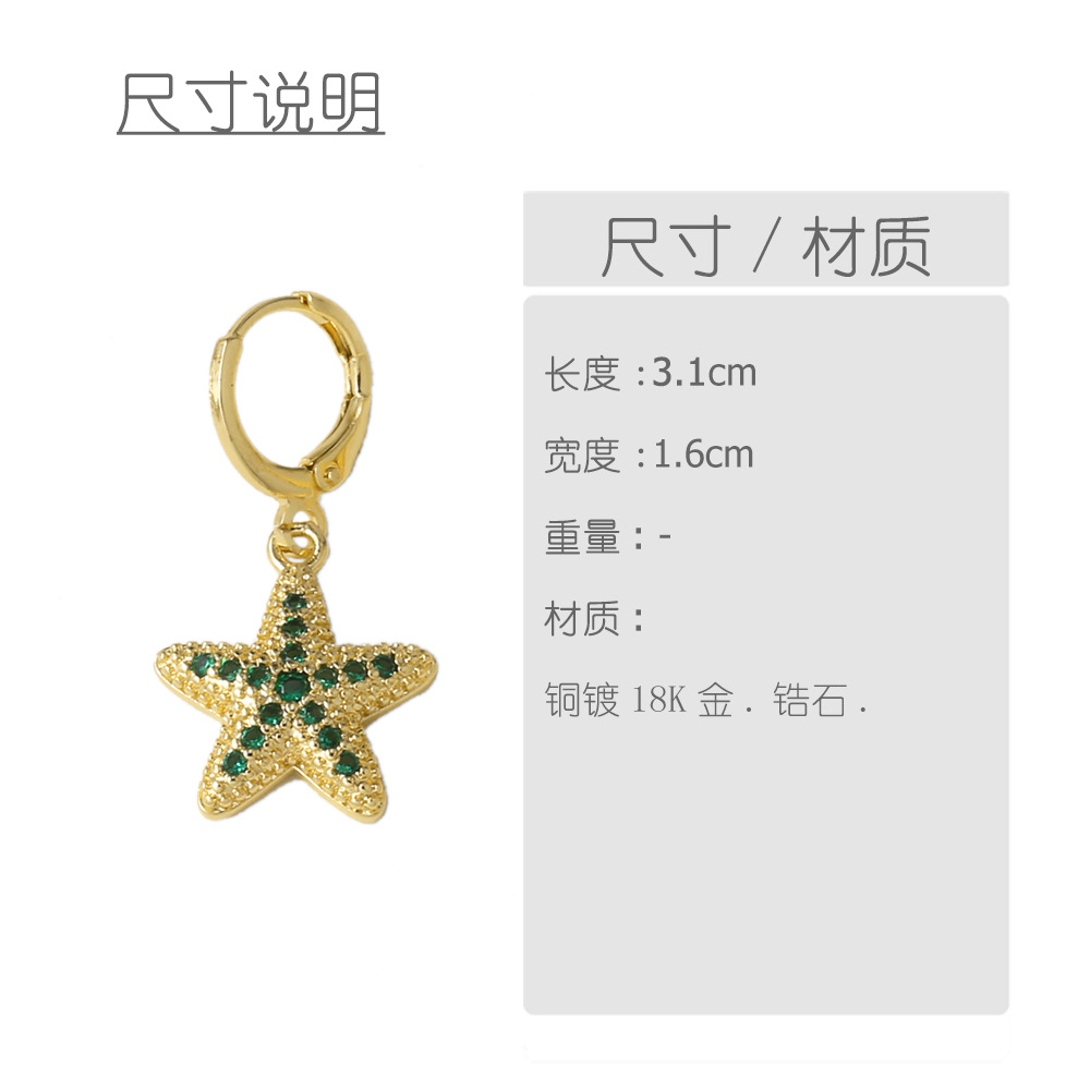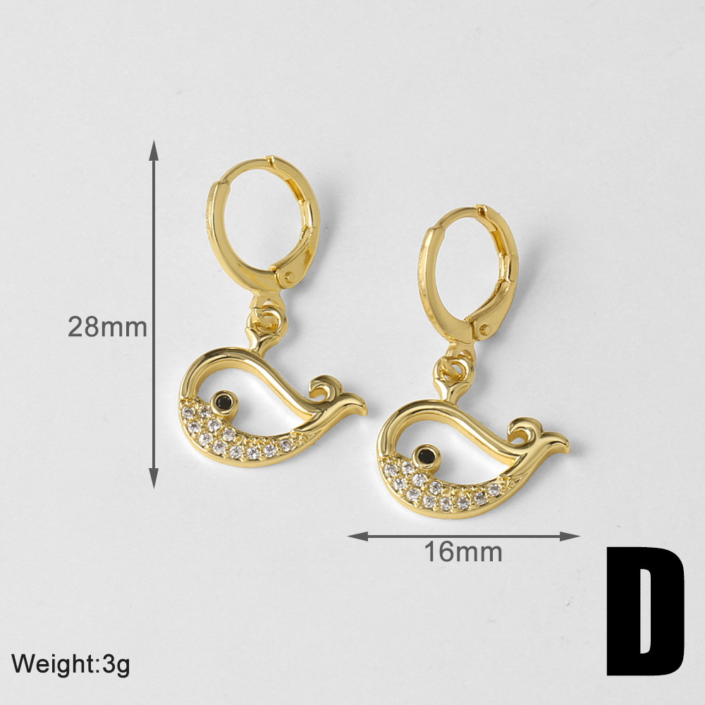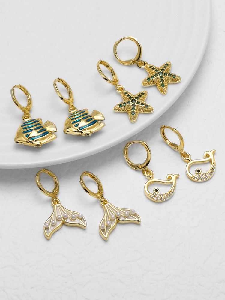 Jewelry copper plated real gold starfish whale earrings micro inlaid zircon fishtail earrings earrings erz86