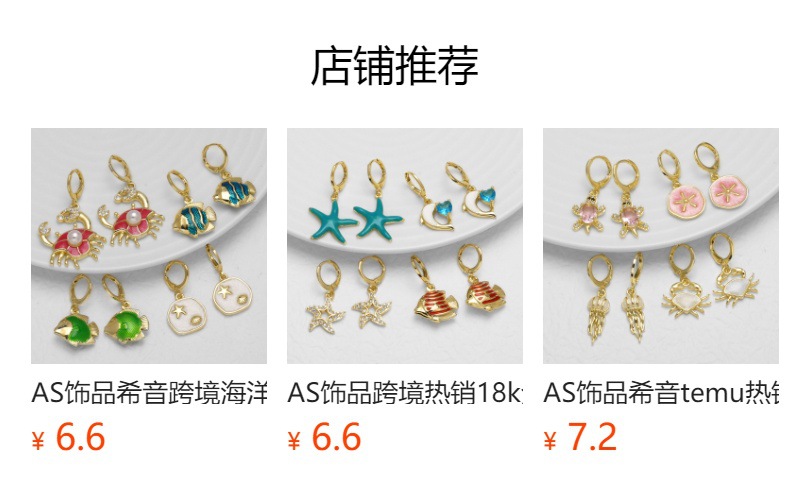 AS jewelry ocean wind drop oil color starfish earrings female gold-plated fish earrings female erz05