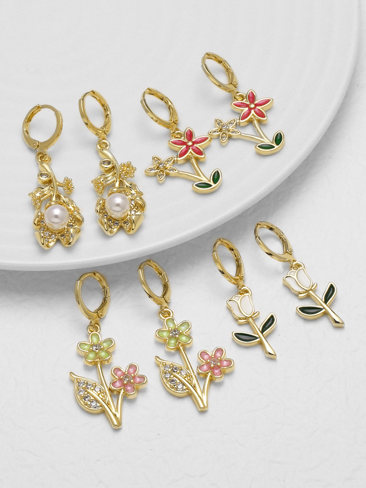 AS jewelry Europe and the United States hot selling pearl insect earrings copper plated 18k gold flower earrings earrings female erq17