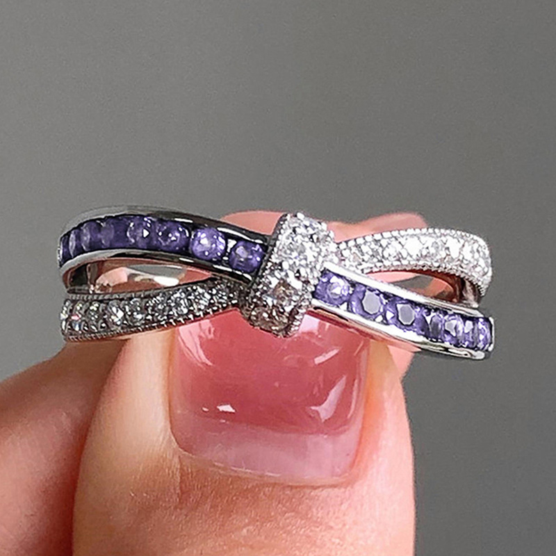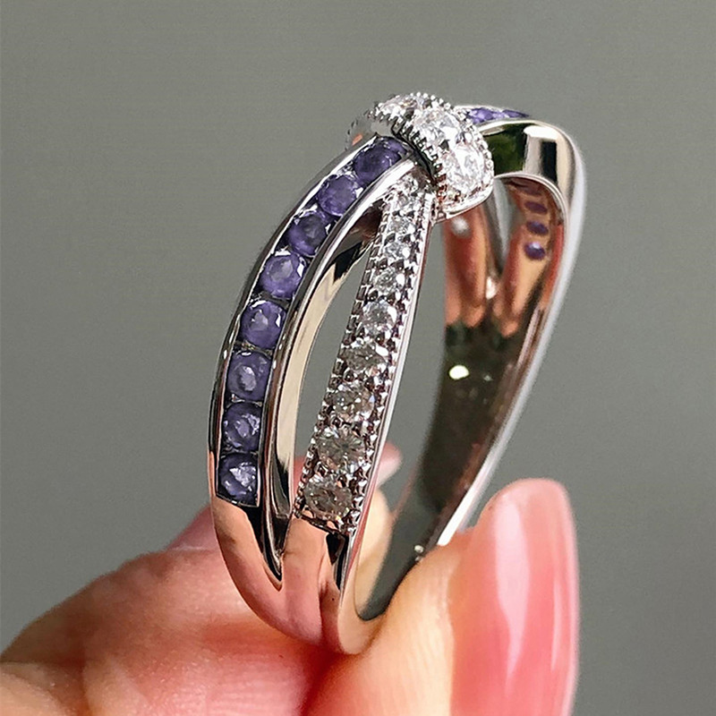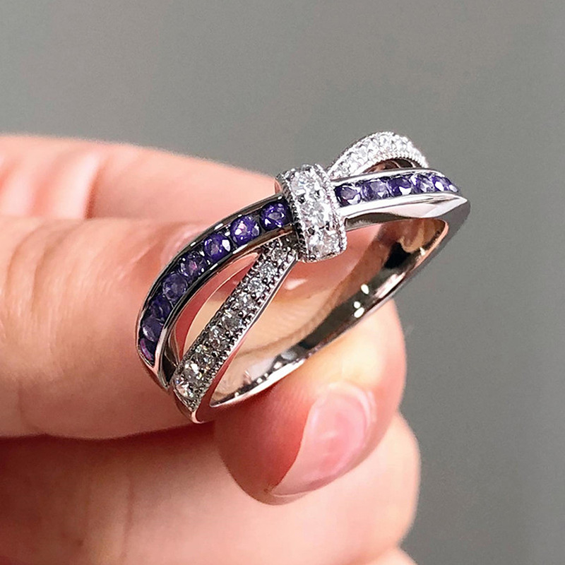Jewelry European and American fashion purple ring new cross bow ring for women