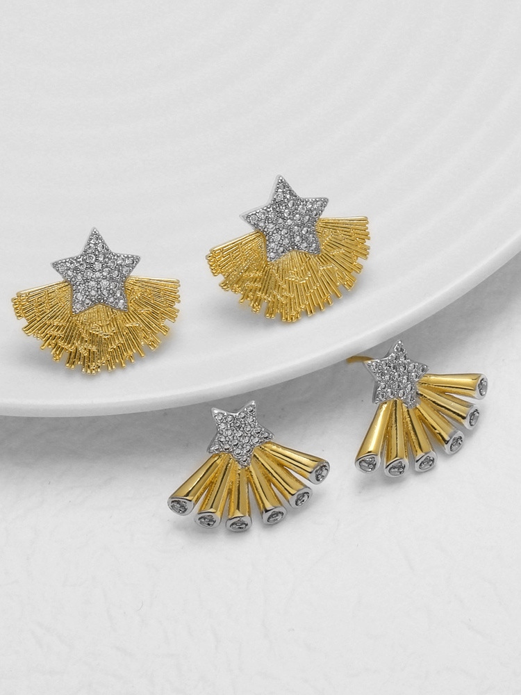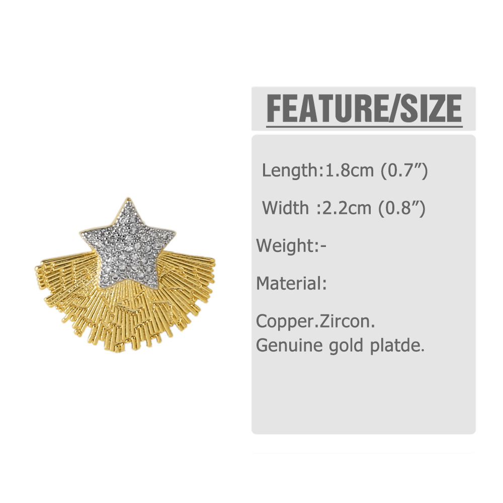 Jewelry European and American hot-selling retro two-color fan-shaped earrings gold-plated five-pointed star inlaid zircon earrings era409