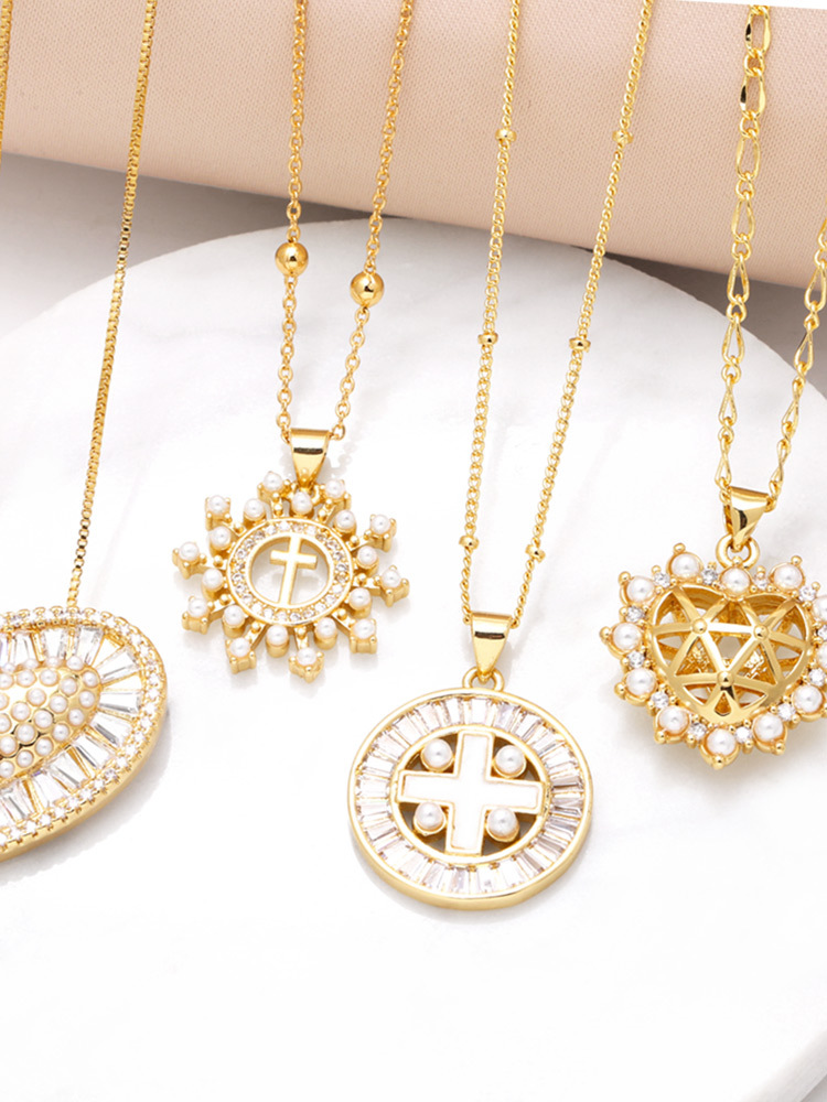 Jewelry European and American love pearl cross pendant necklace gold-plated zircon clavicle chain nkb146