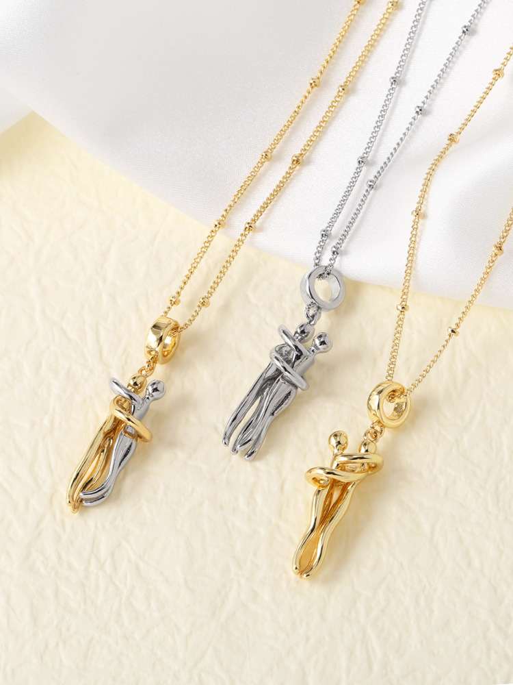 Jewelry European and American two-color couple dance pendant necklace glossy gold-plated clavicle chain nkz67 necklace