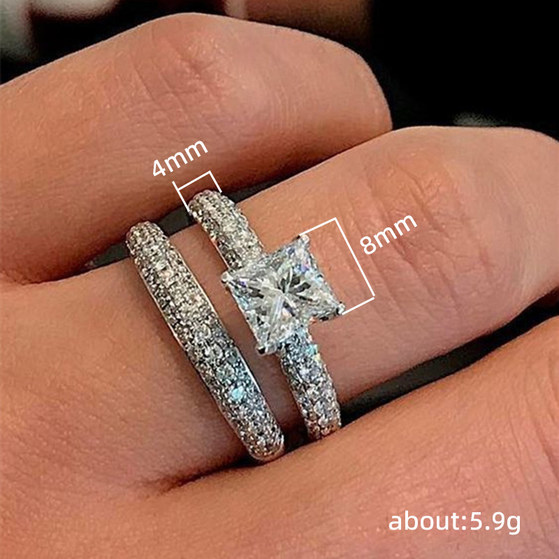 Hot selling new princess square ring European and American hot style inlaid zircon women's jewelry engagement proposal ring
