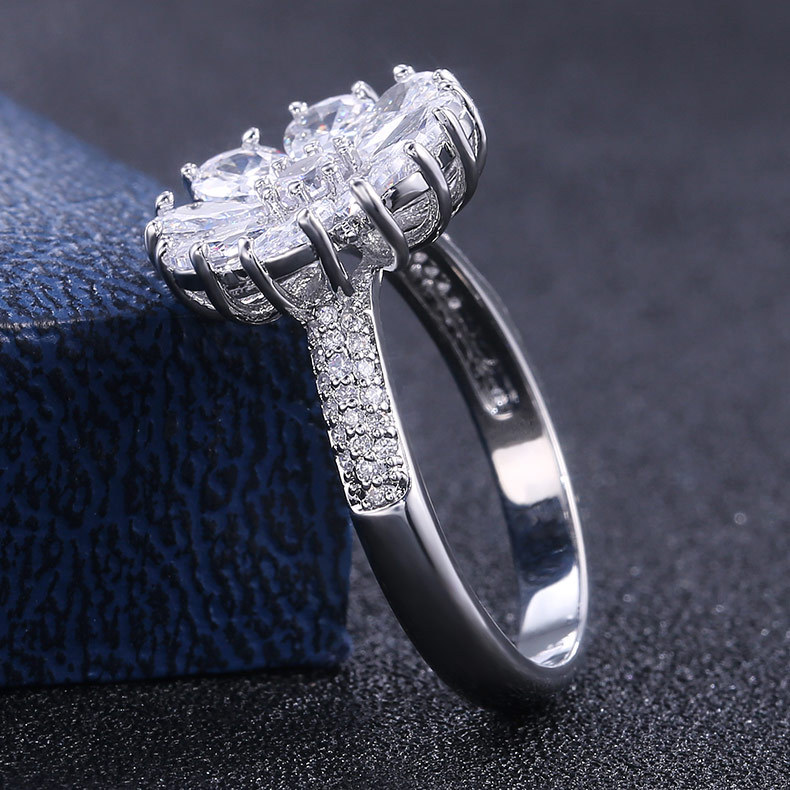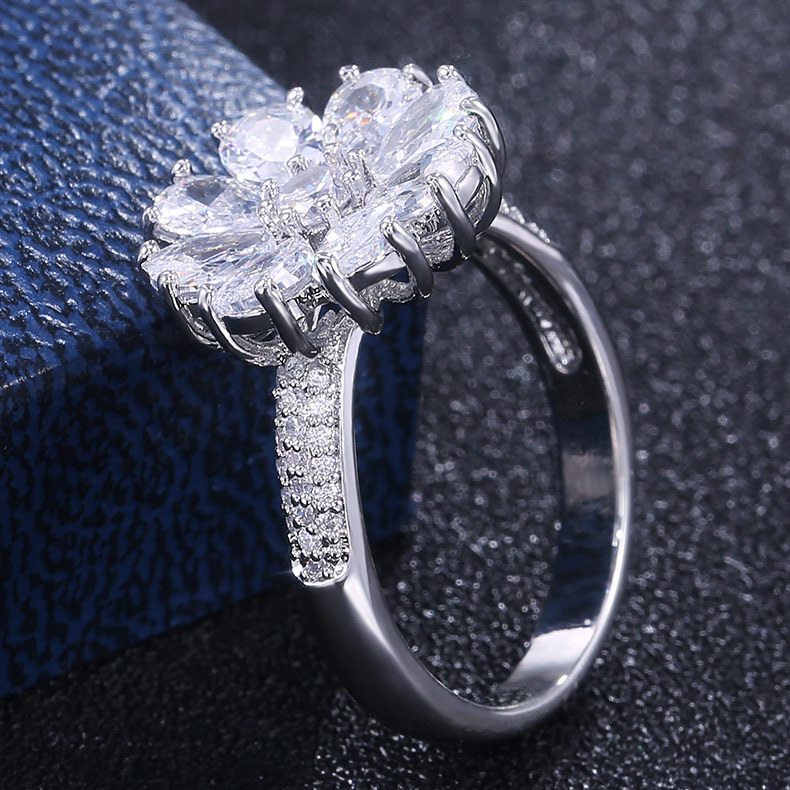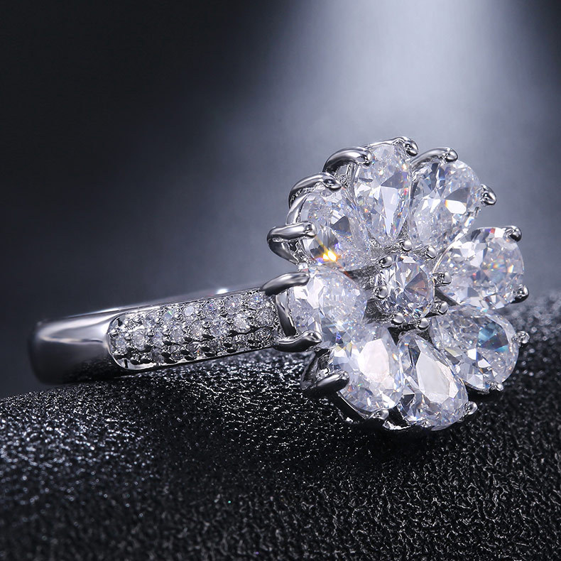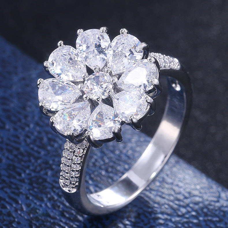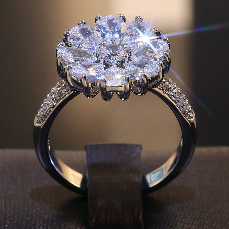 Jewelry fashion flower blooming zircon ring female European and American exquisite charm ladies all-match hand jewelry