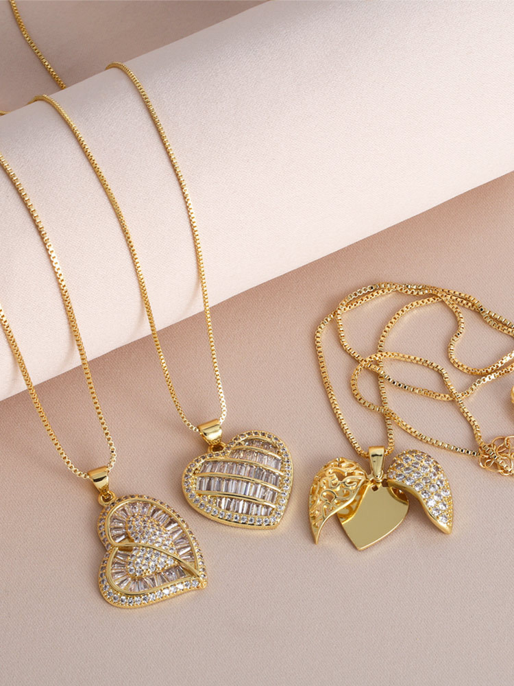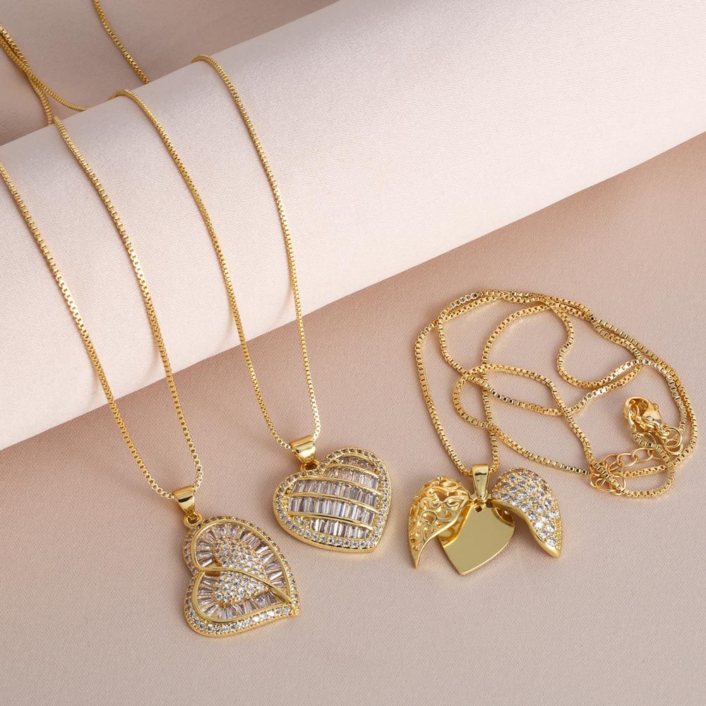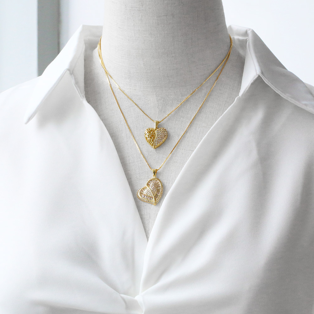 Jewelry full zircon love pendant necklace personality all-match hip hop gold-plated clavicle chain nkb878