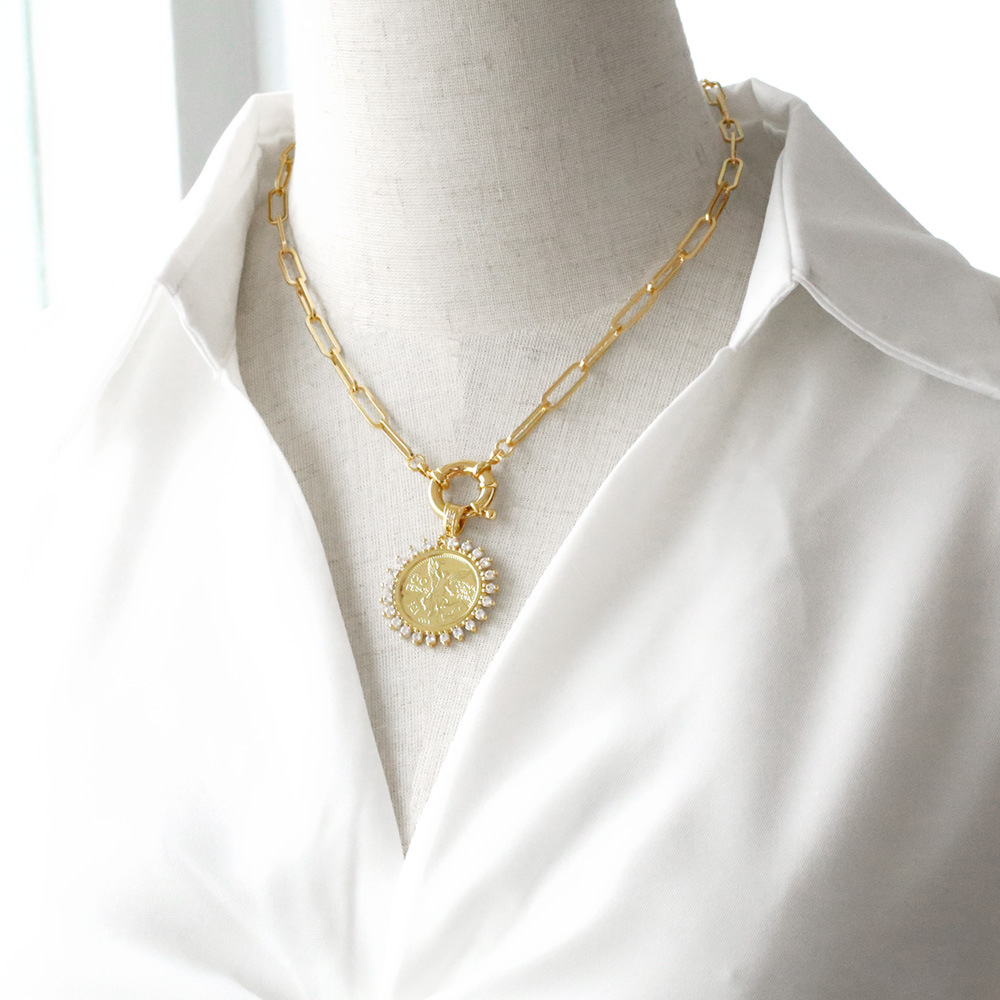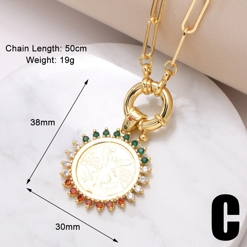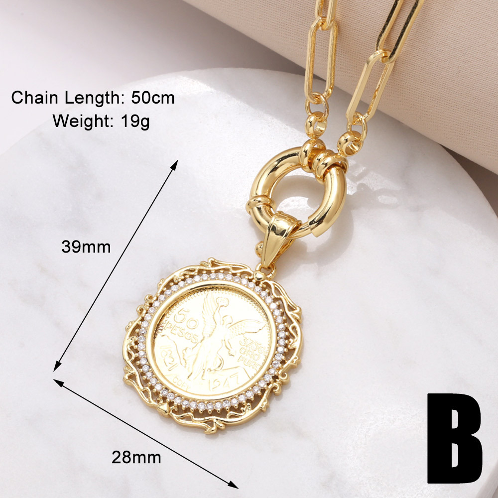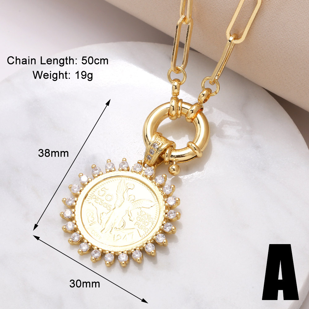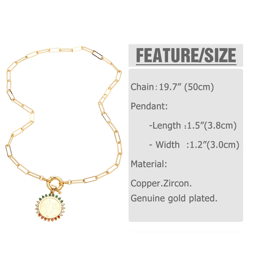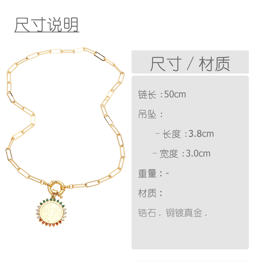 Jewelry hot-selling angel pendant necklace copper plated real gold inlaid colored zircon round clavicle chain nkr78