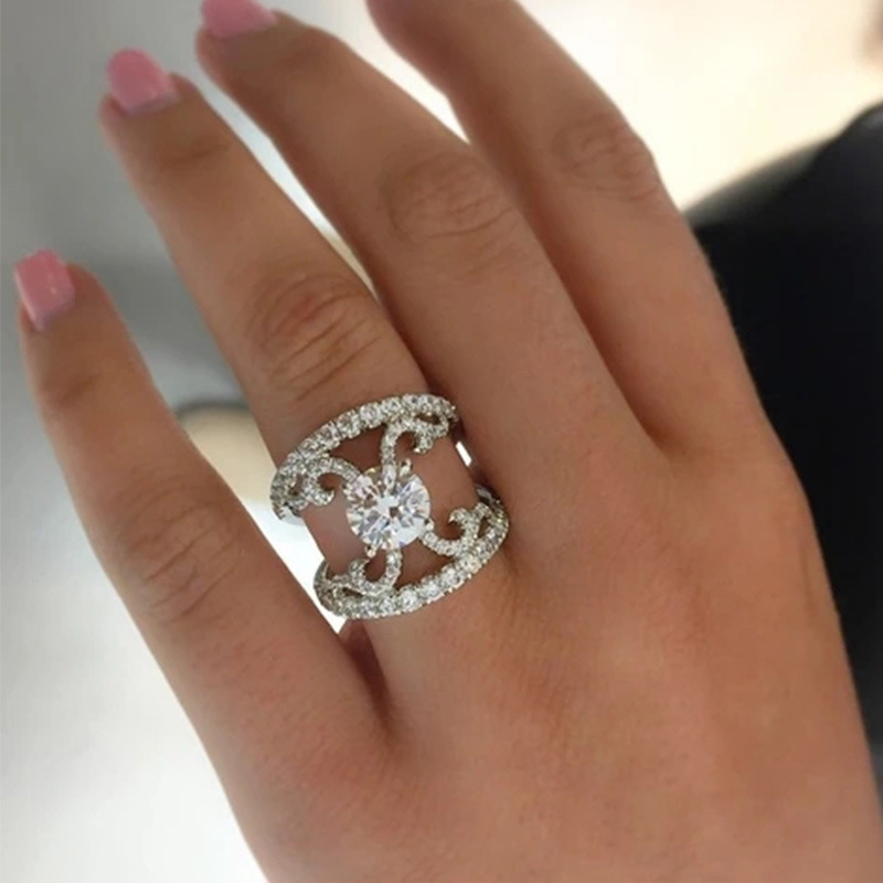 Micro-inlaid celebrity style classic all-match popular ring six-claw zircon wedding ring European and American style light luxury ring