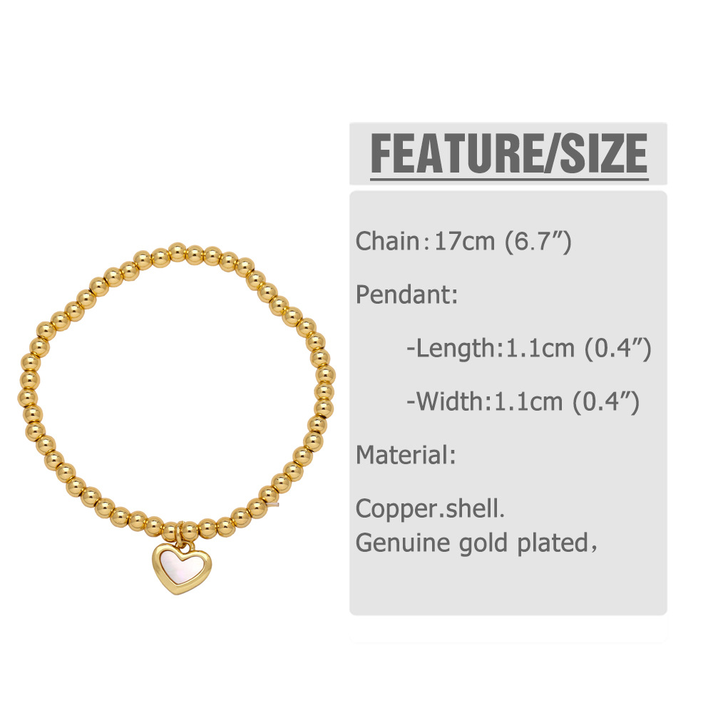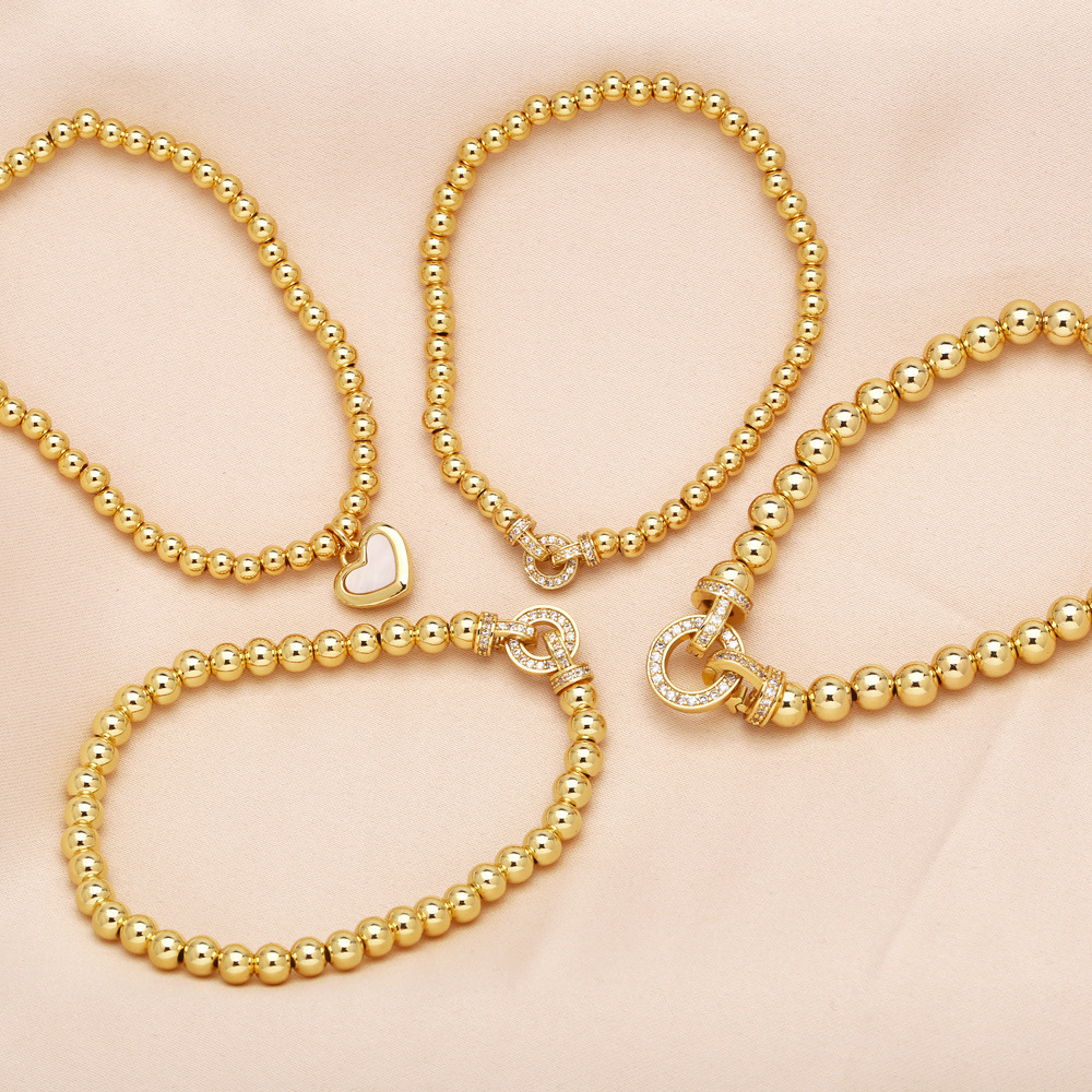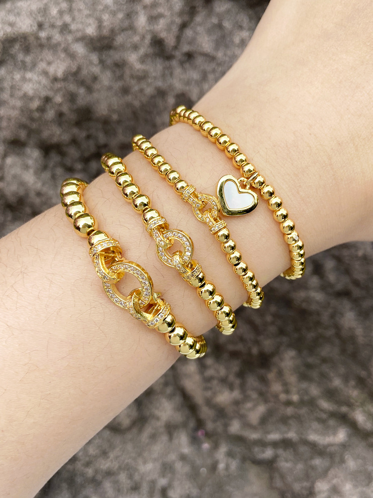Jewelry love pendant bracelet copper plated real gold inlaid zircon beaded bracelet hand jewelry brd05