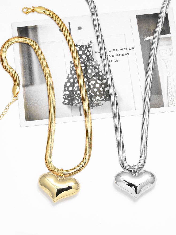 Jewelry necklace European and American smooth love pendant necklace copper plated 18k gold snake bone chain nkq56