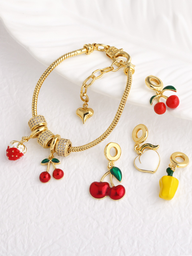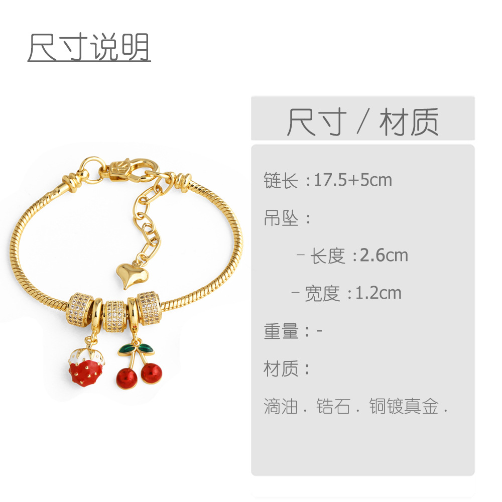 Jewelry new copper plated 18k gold oil drop fruit cherry strawberry pendant bracelet brn15 bracelet