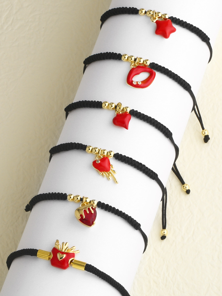 Jewelry new hand-woven black rope dripping oil lips love pendant bracelet brc60