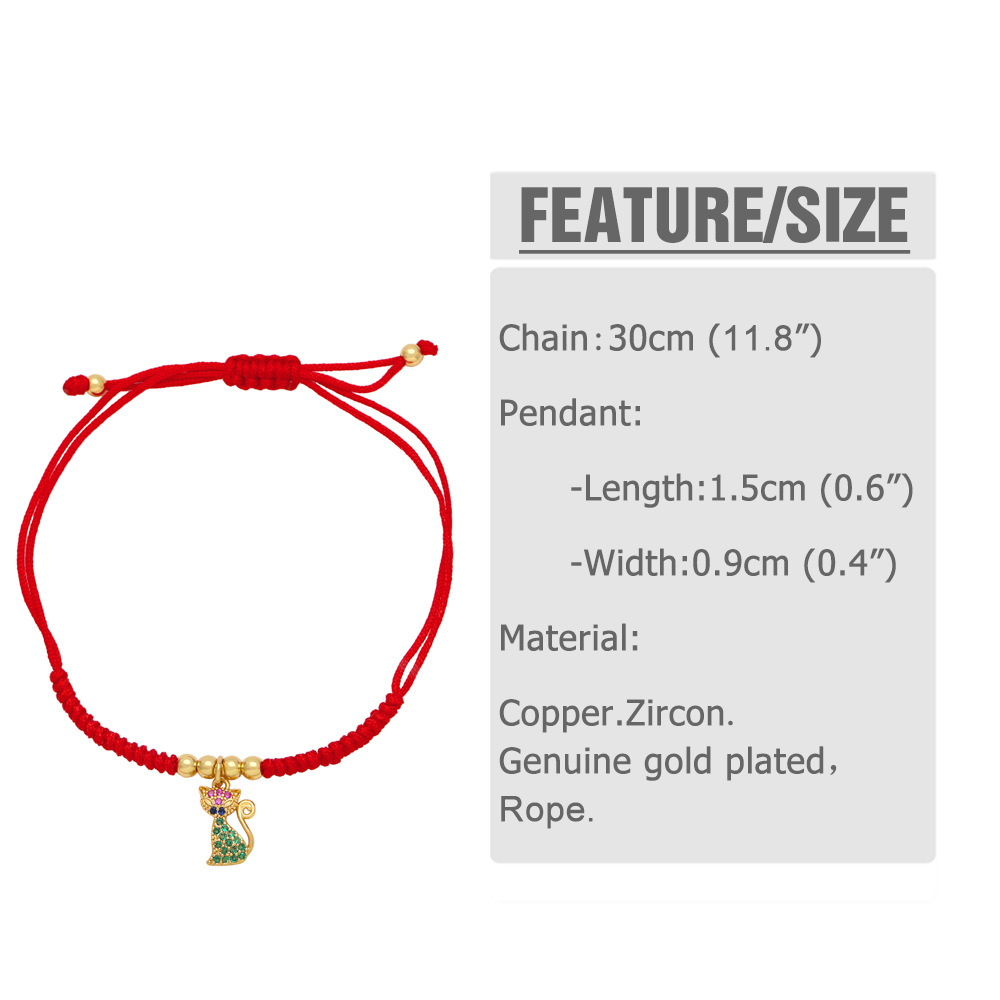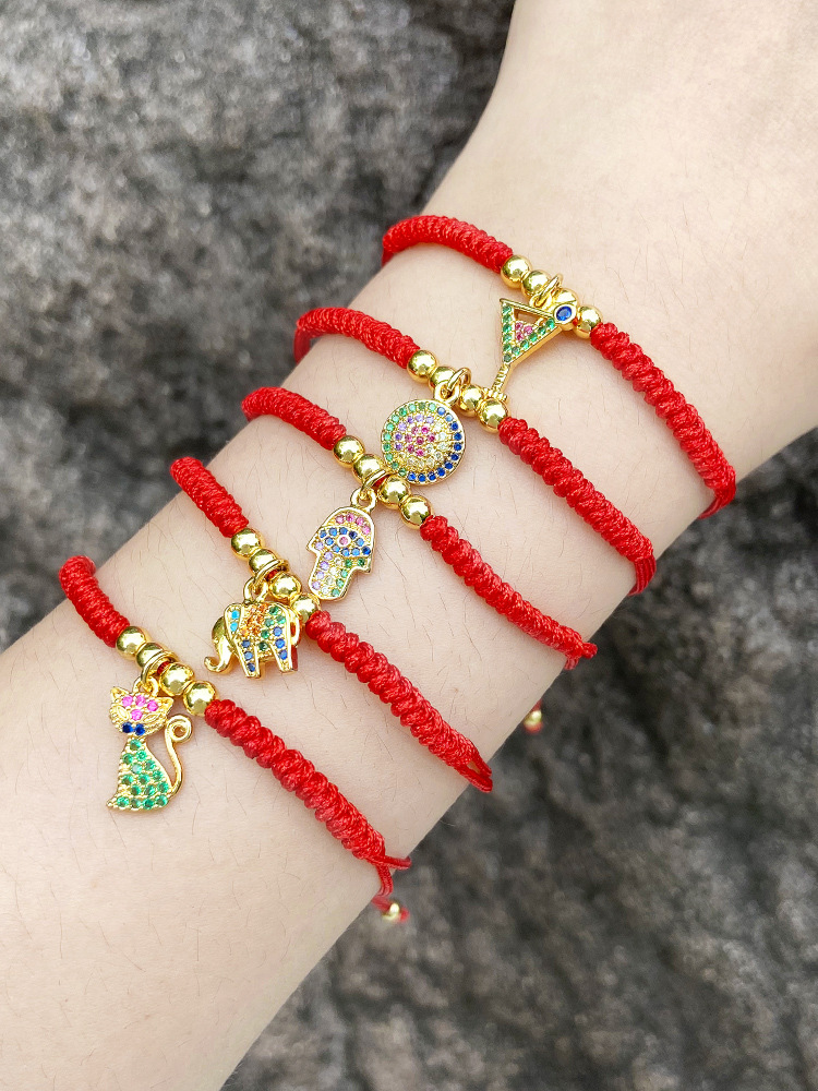 Jewelry personality red rope bracelet inlaid with colored zircon kitten elephant palm bracelet brk75