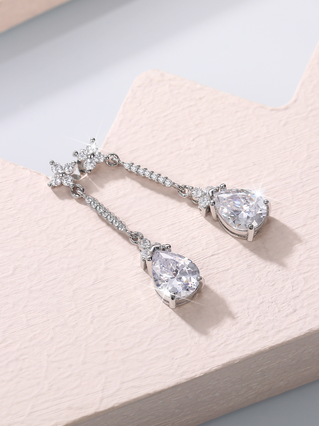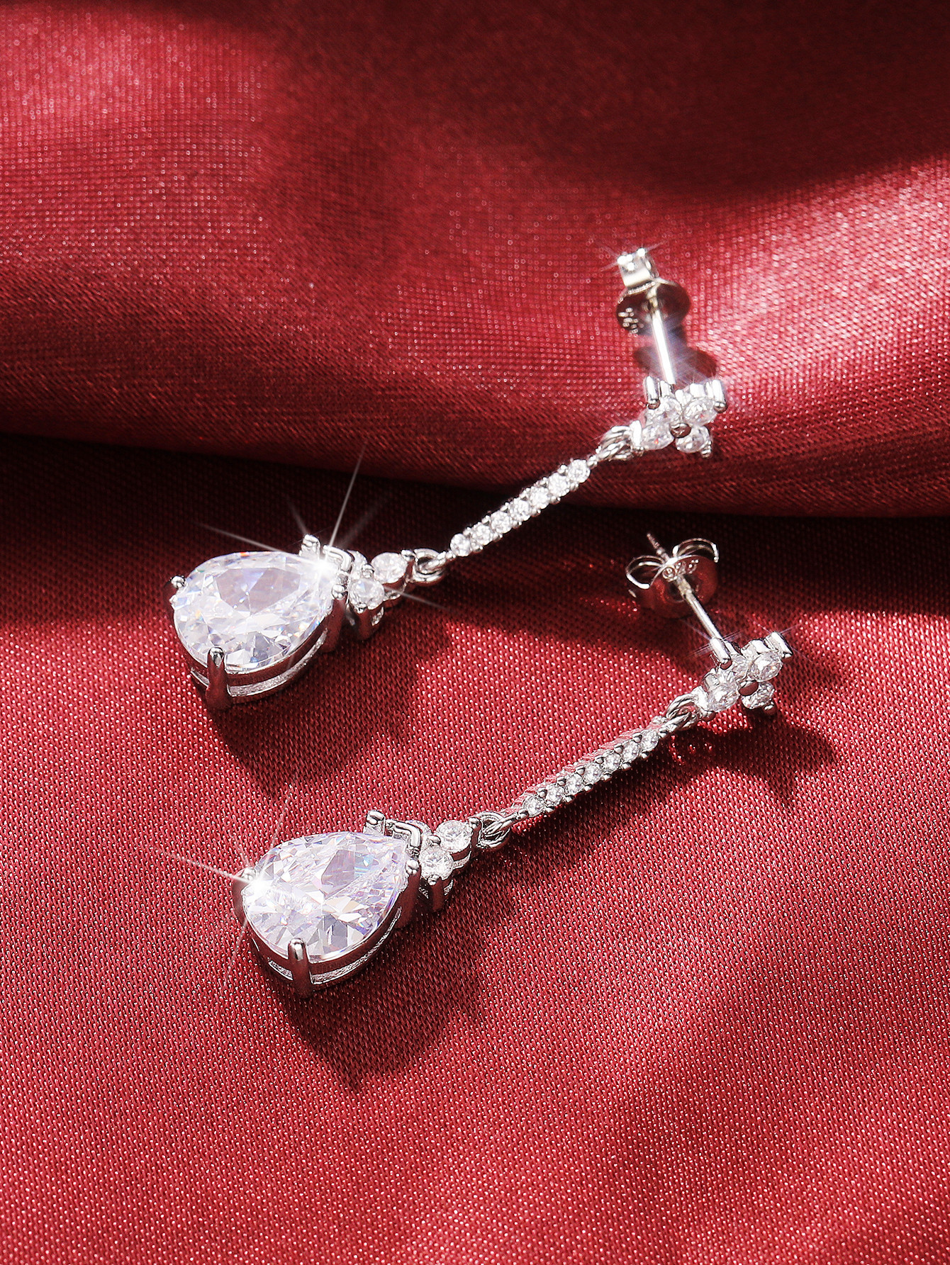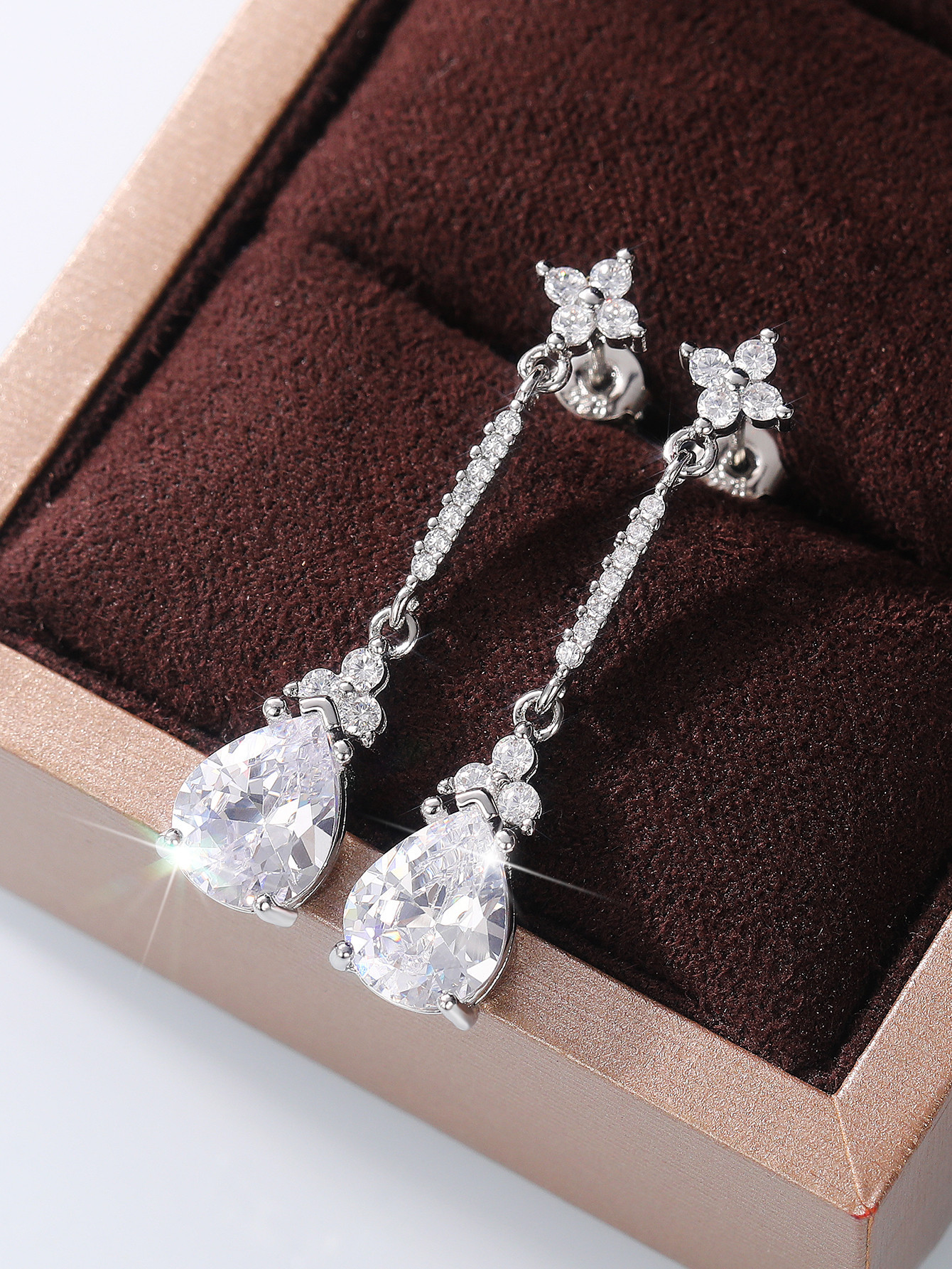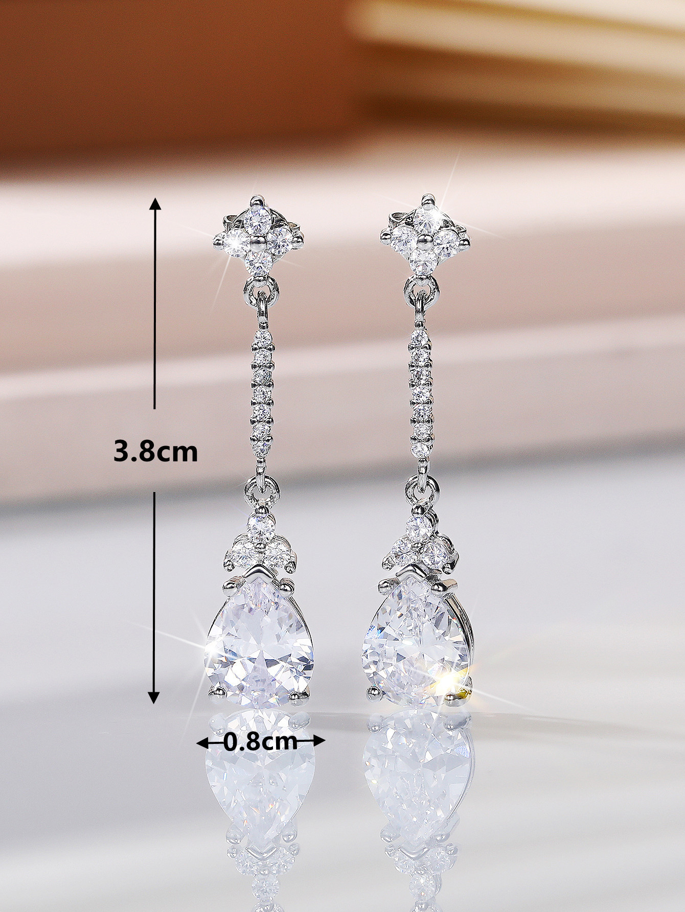 Jewelry shiny inlaid 3A white zircon pear-shaped teardrop earrings for women popular temperament versatile elegant earrings