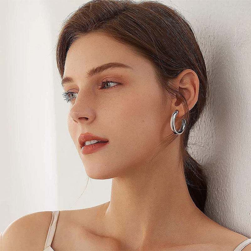 Jewelry source European and American mature style large earrings Korean metal C-shaped earrings
