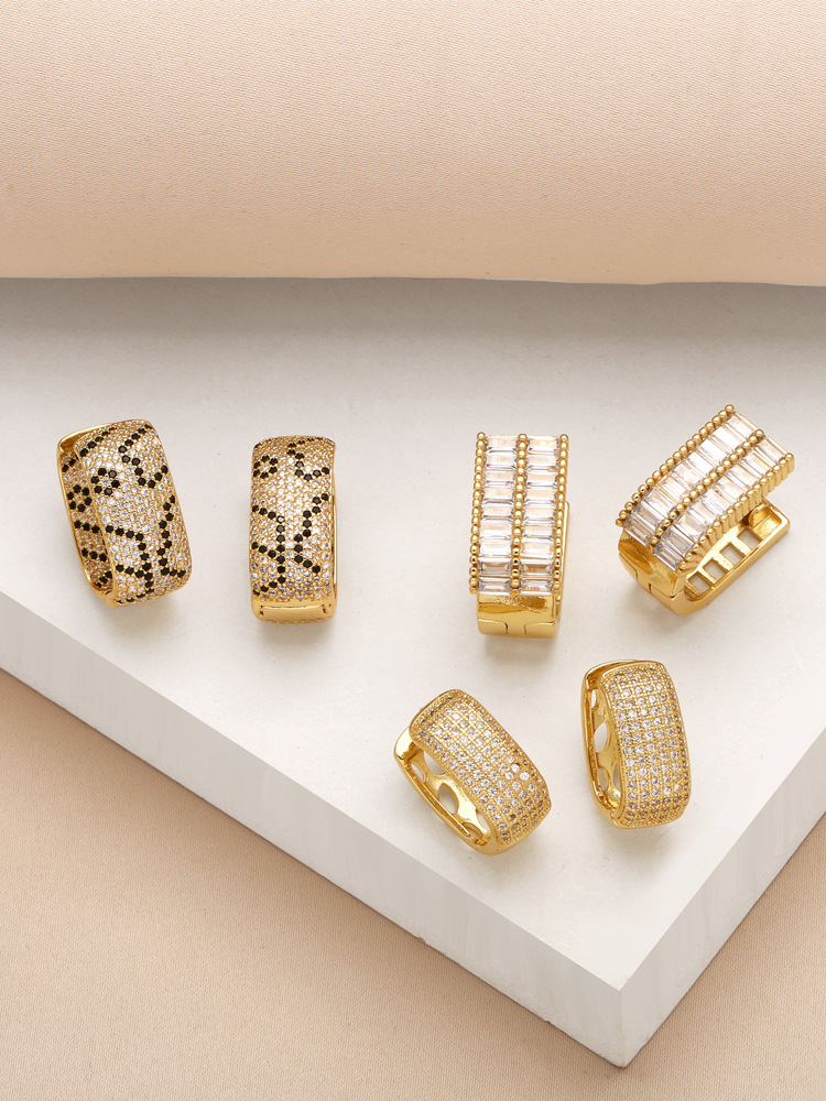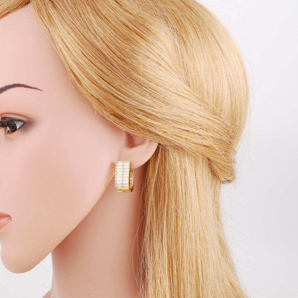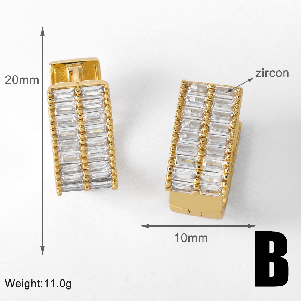 Jewelry square earrings female copper plated real gold inlaid zircon earrings era319
