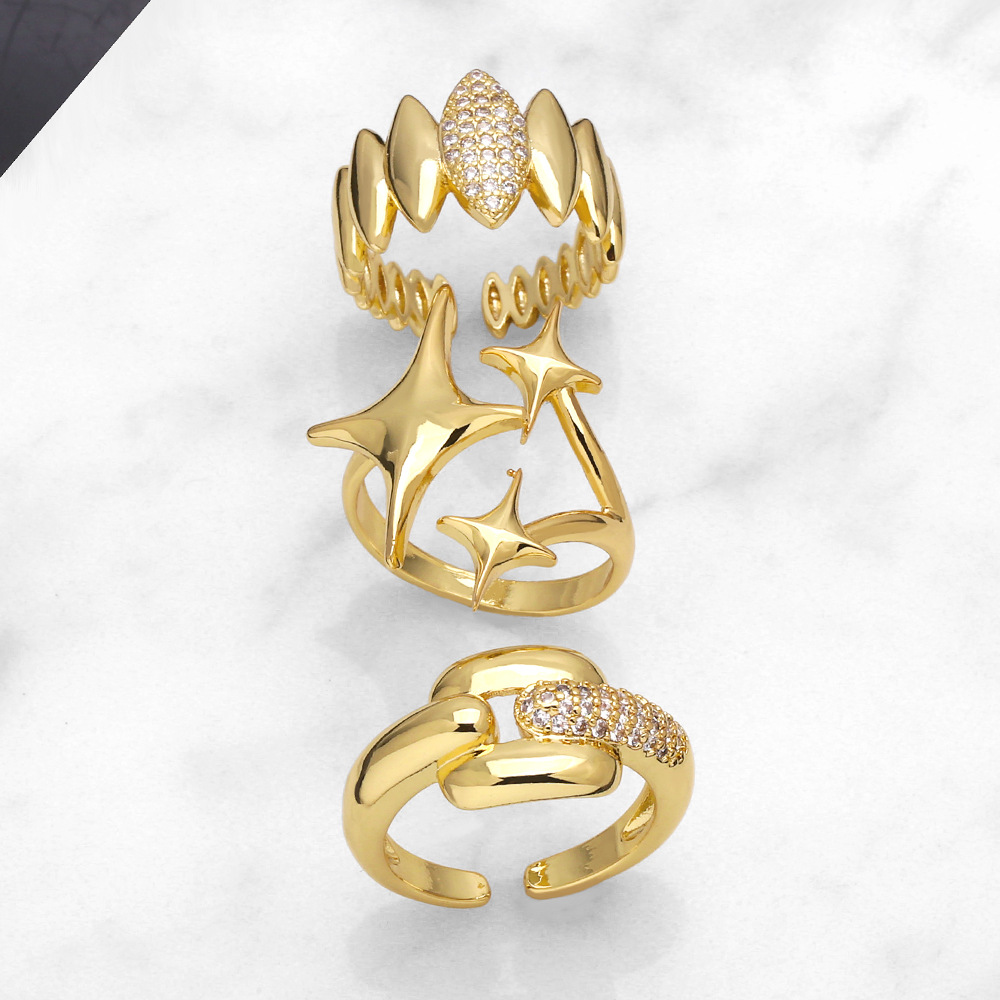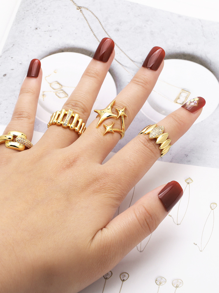 Jewelry star ring European and American personality inlaid zircon gold-plated geometric open ring rir23