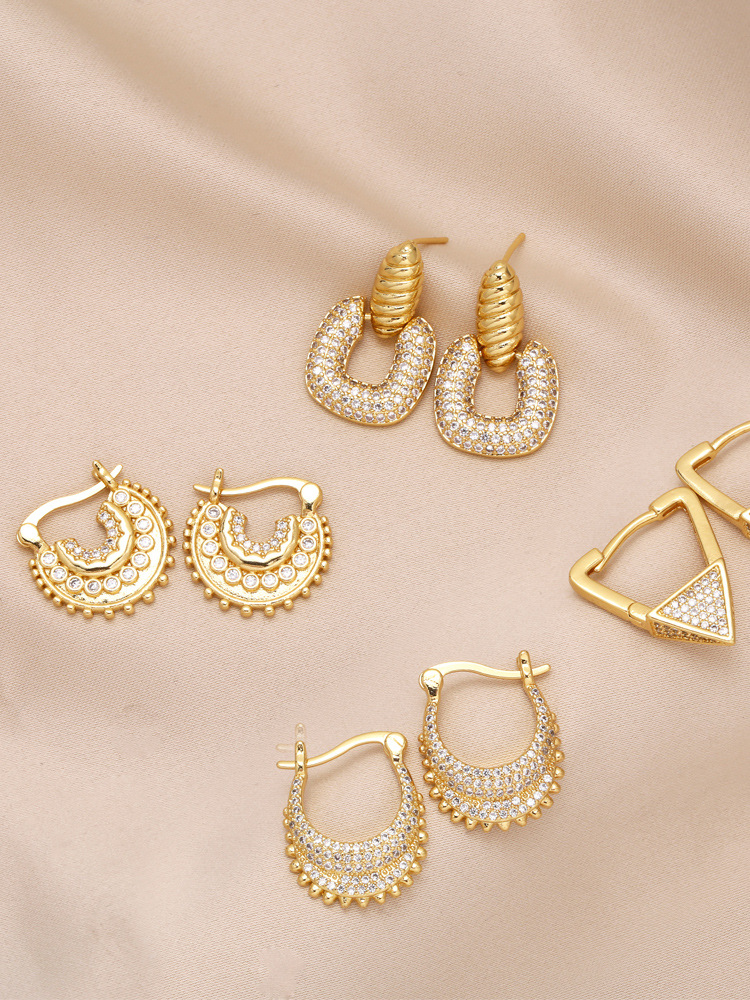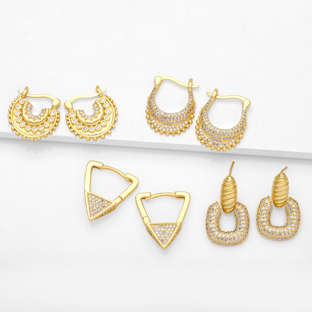 Jewelry triangular earrings copper plated real gold inlaid with zircon geometric earrings earrings erz40