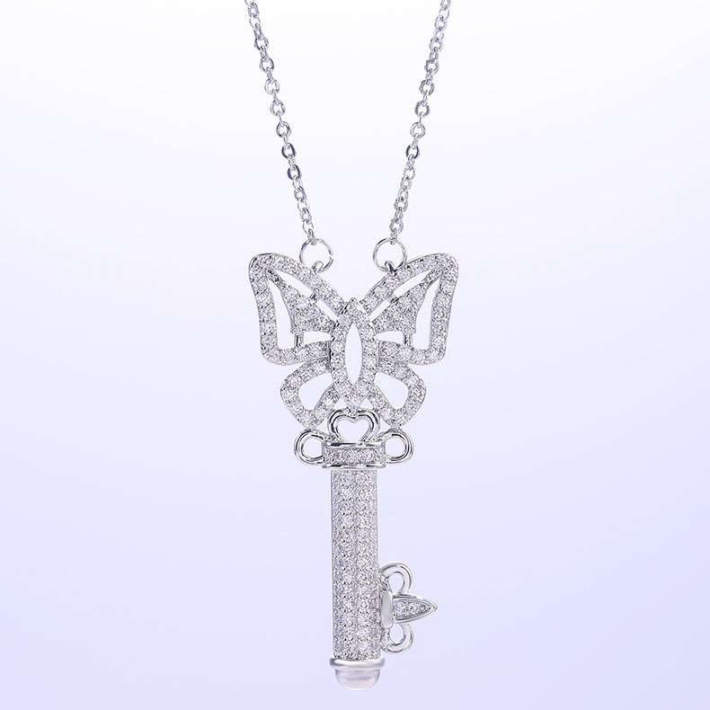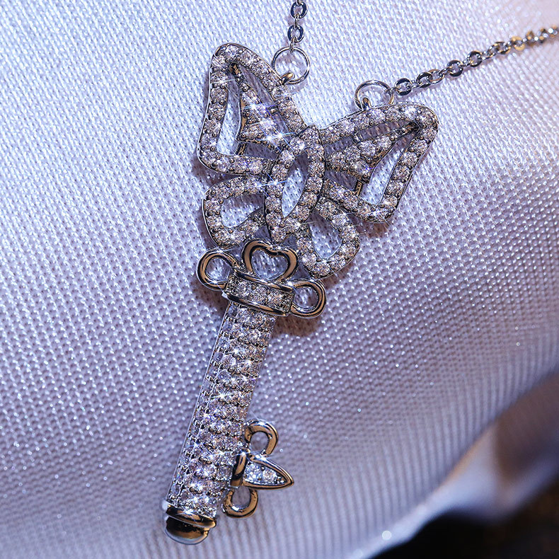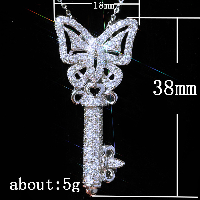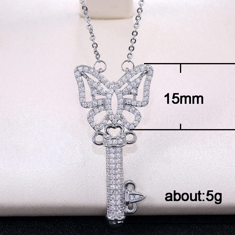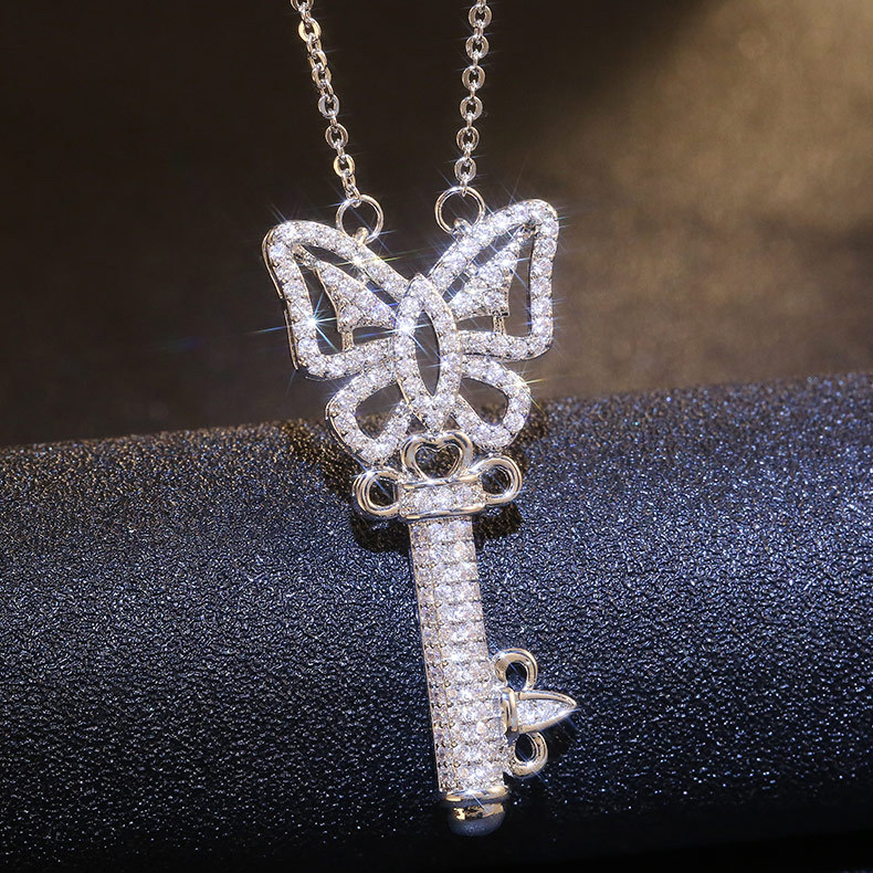 Key-shaped necklace with zircon inlaid on the inside for women Korean style exquisite versatile sweater chain Internet celebrity same style