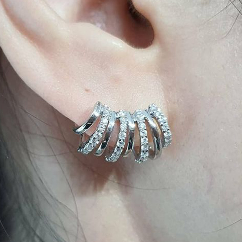 Korean celebrity commuter ear clip copper inlaid zircon arc earrings exquisite women's curved high-quality earrings
