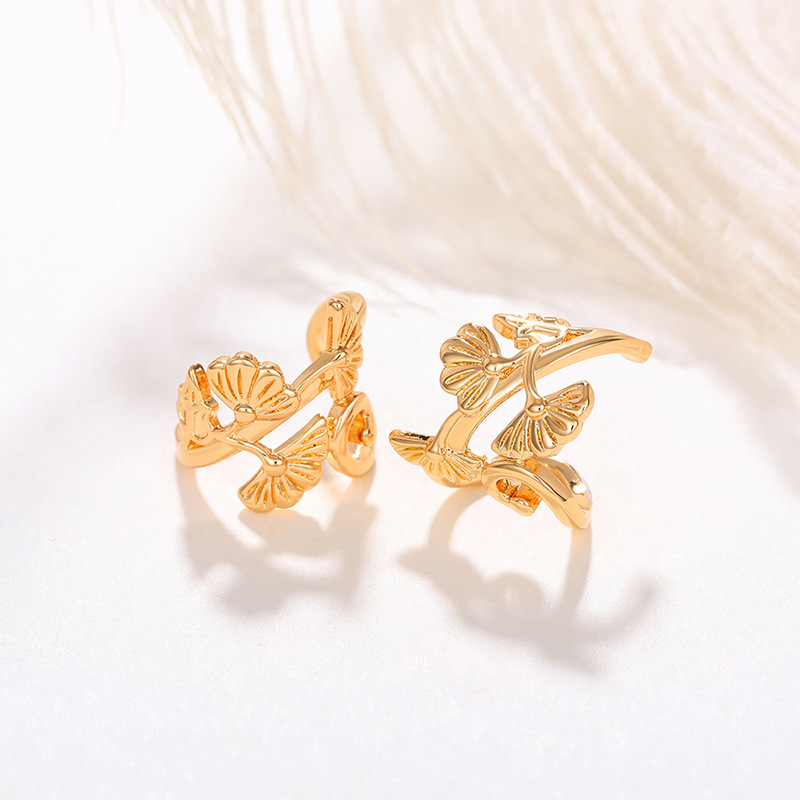 Korean celebrity ear clips, popular in Europe and America, simple floral design, welcoming pine leaf painless ear clips