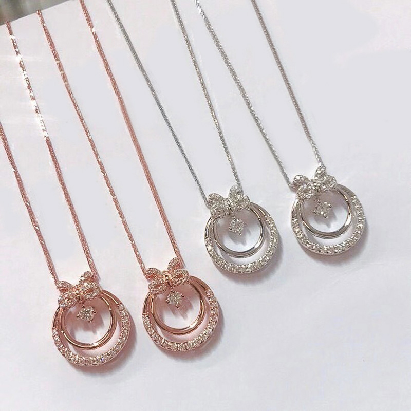 Korean creative sweet bow inlaid diamond zircon pendant small fresh high-end light luxury net celebrity necklace female