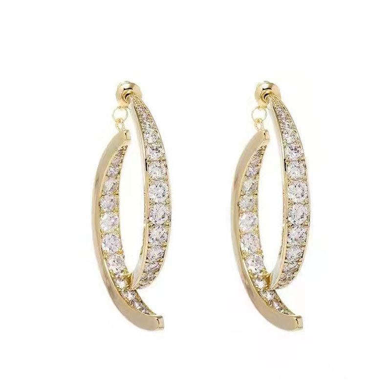 Korean design two-way cross earrings for women, new style, high-quality diamond-studded geometric earrings, hot sale
