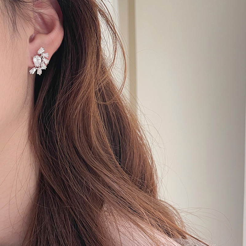 Korean designer T square zircon geometric temperament fashion OL celebrity same new style trendy daily style