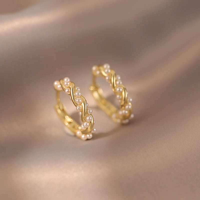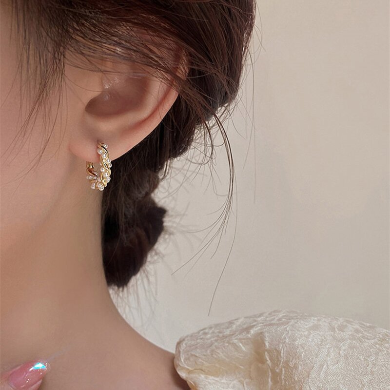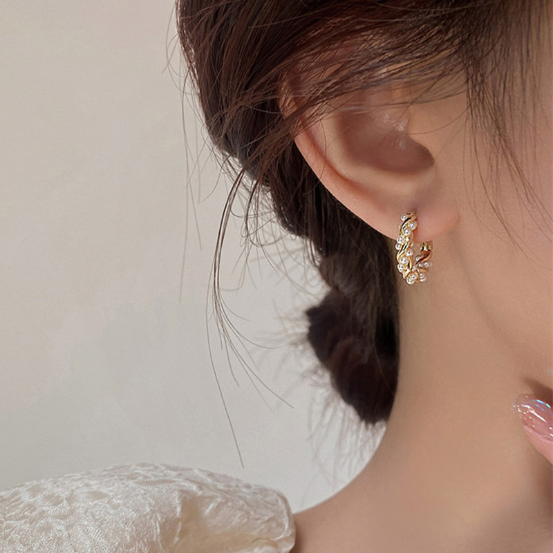 Korean Dongdaemun autumn new fashion earrings imitation pearl twist earrings Korean style elegant earrings