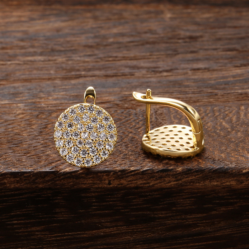Korean European and American autumn and winter exaggerated earrings round dense inlaid personality versatile earrings classic fashion earrings for women