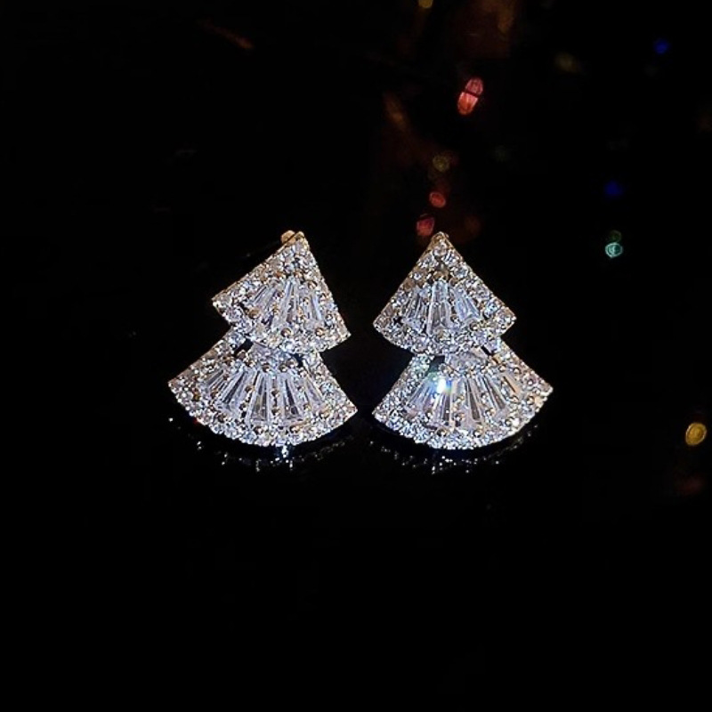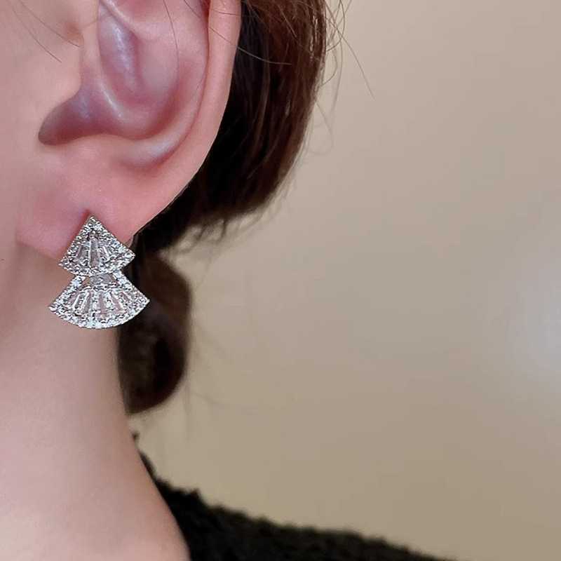 Korean exquisite sparkling earrings for women with movable triangular geometric design, fashionable niche style jewelry
