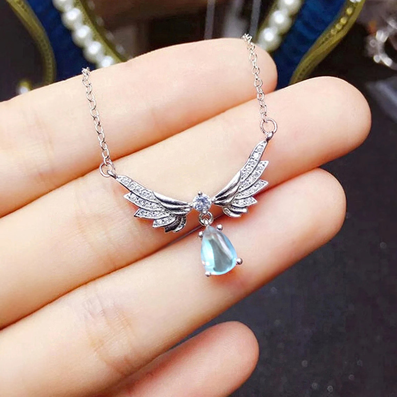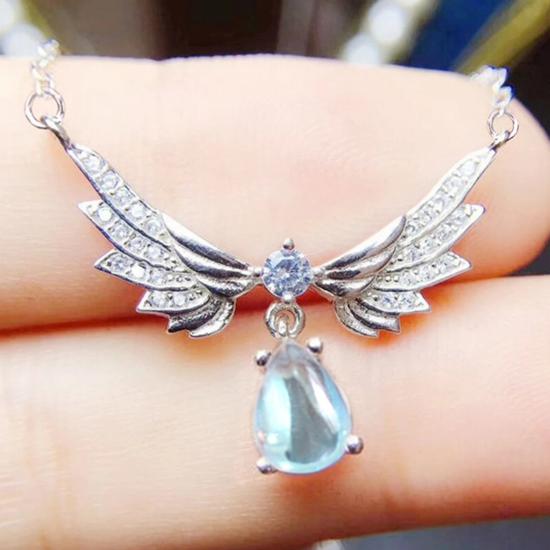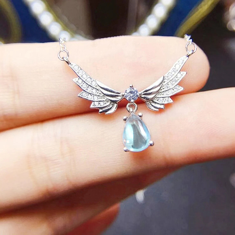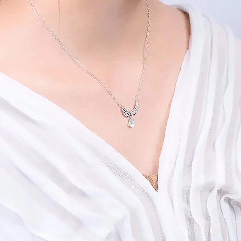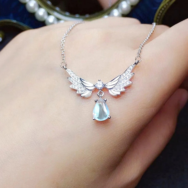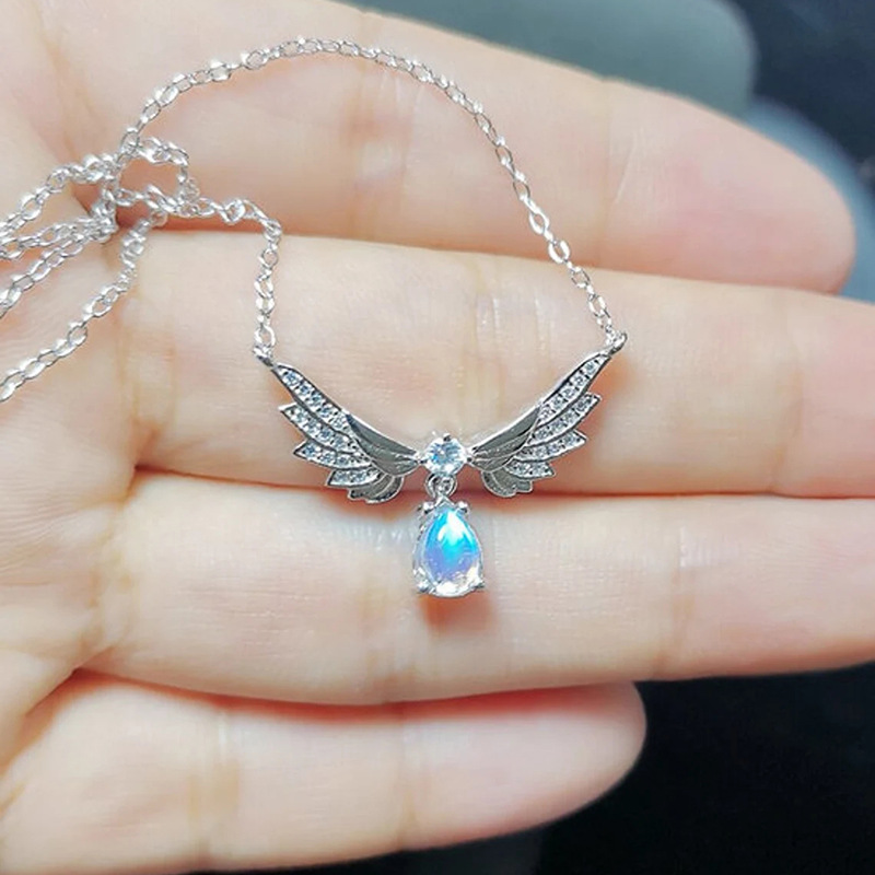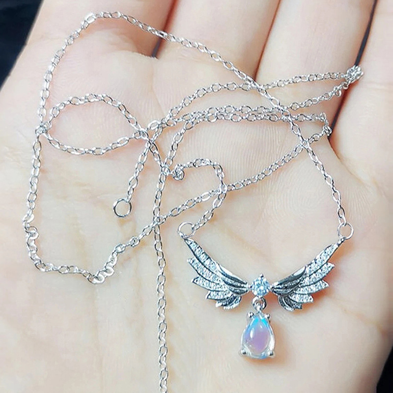 Korean exquisite wing angel necklace teardrop-shaped design imitation moonstone pendant niche sweet jewelry