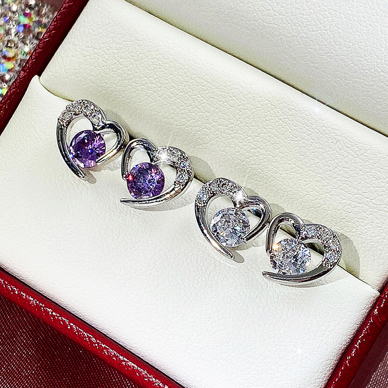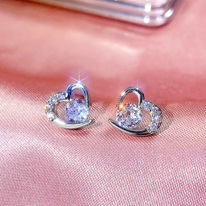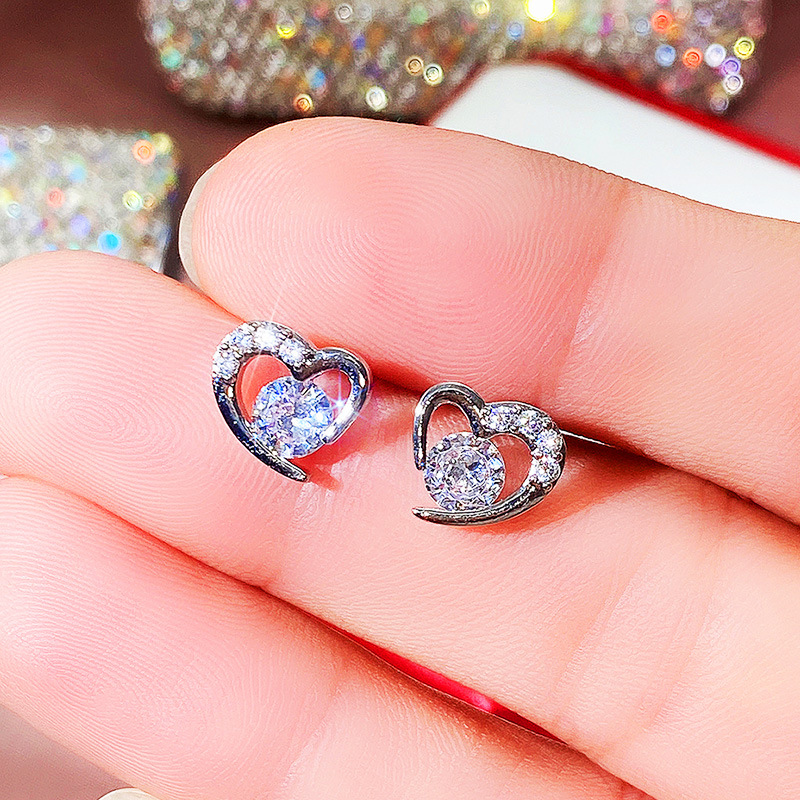 Korean fashion earrings sweet heart zircon earrings female student earrings Valentine's Day gift for girlfriend