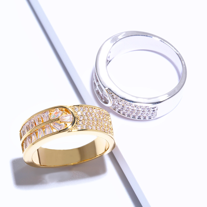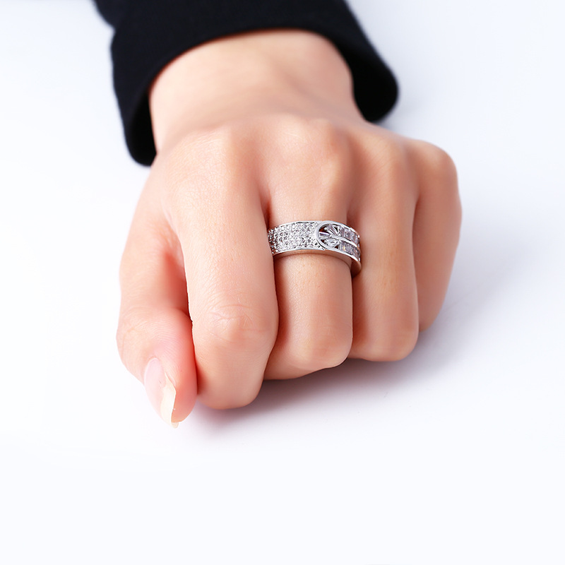 Korean fashion European and American new simple hollow zircon ring exquisite and generous versatile jewelry ring female rif45