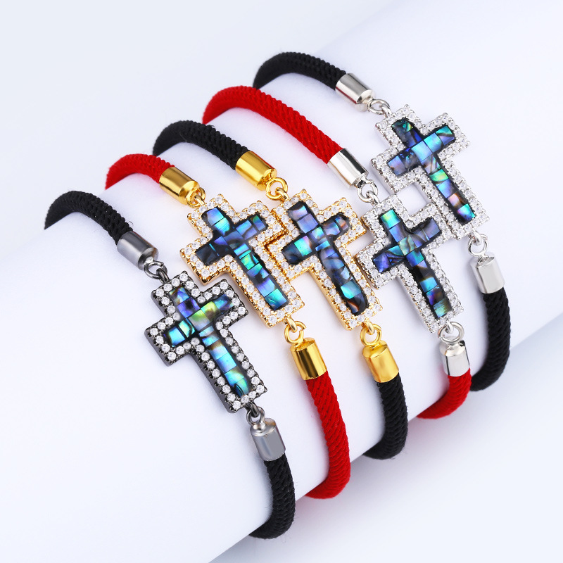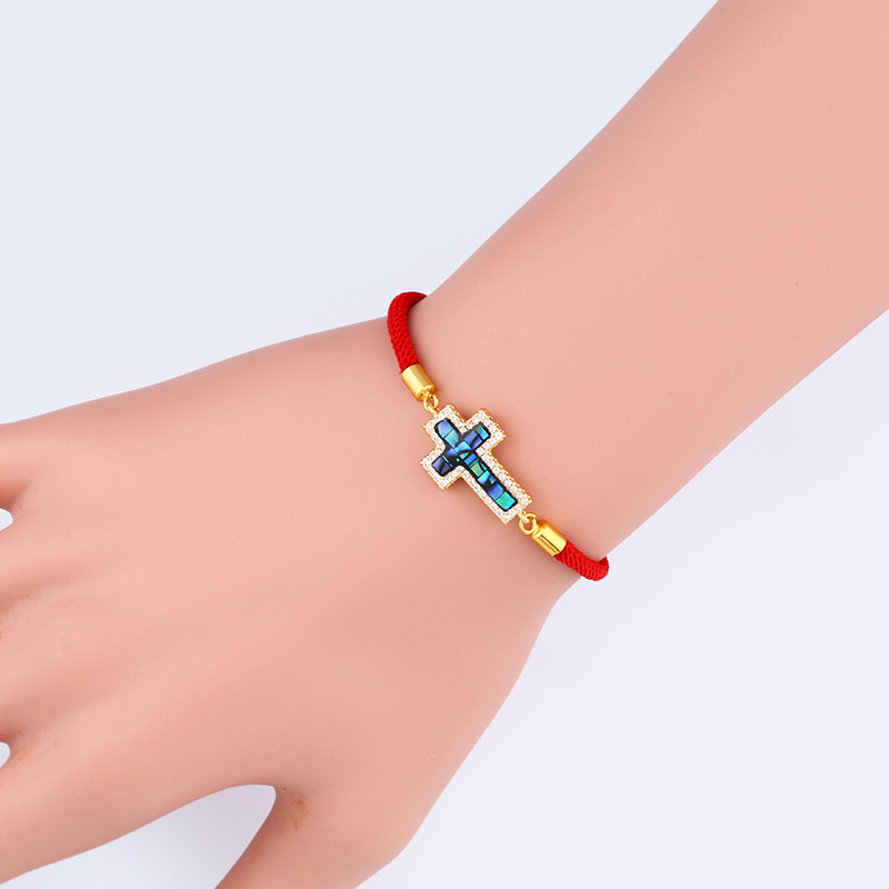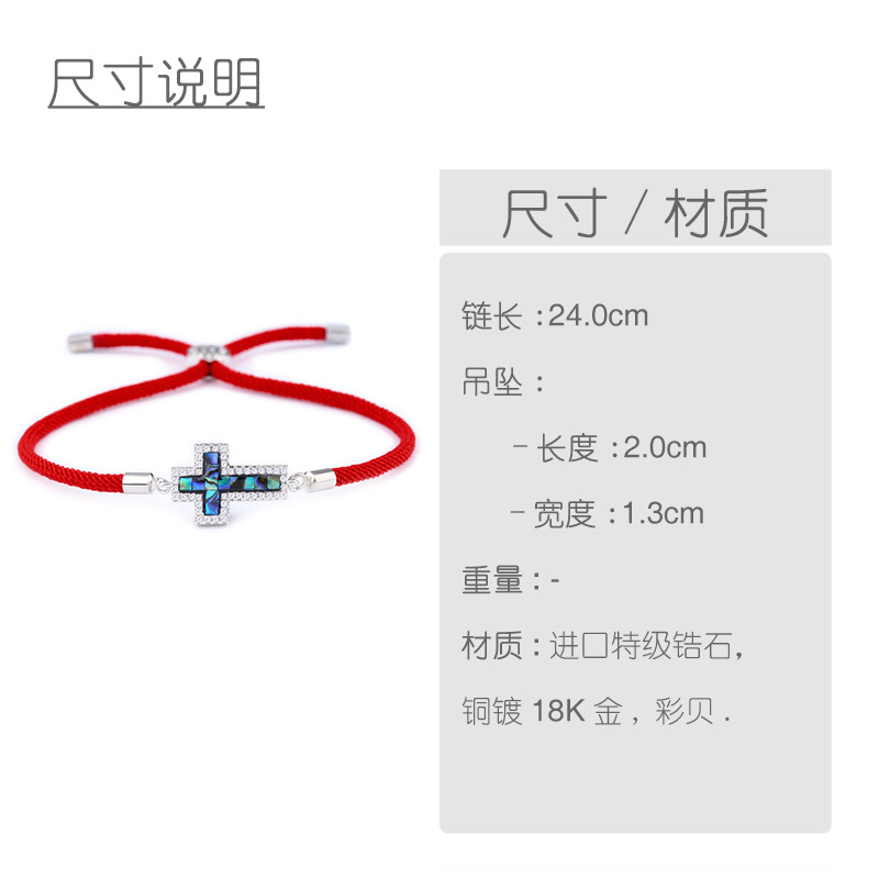 Korean fashion exquisite colorful shell zircon red rope bracelet simple personality cross adjustable bracelet bra84