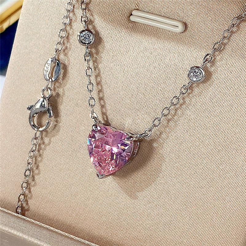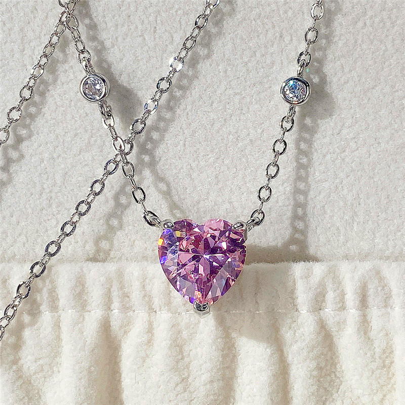 Korean fashion micro-inlaid pink zircon necklace Internet celebrity trendy women's clavicle chain factory wholesale