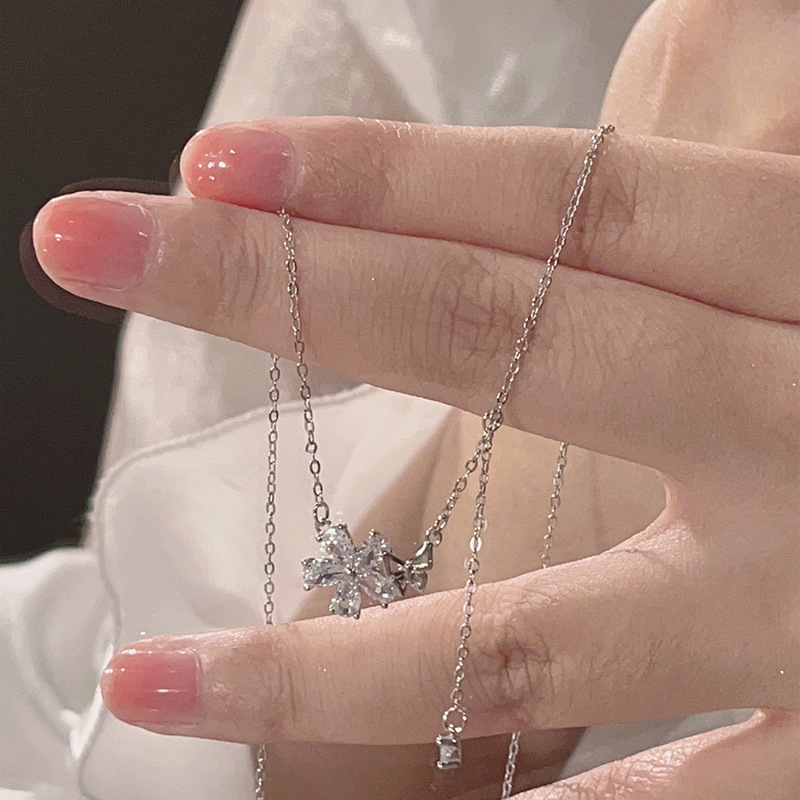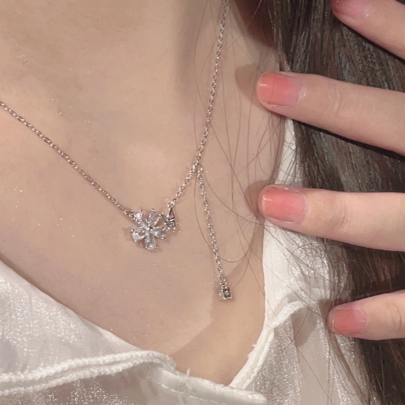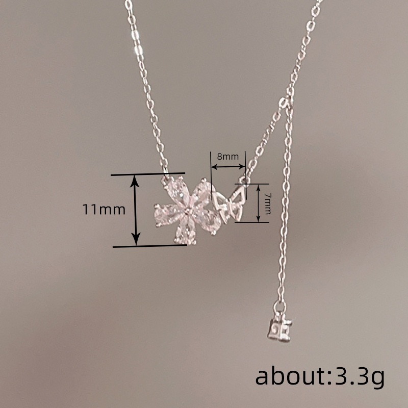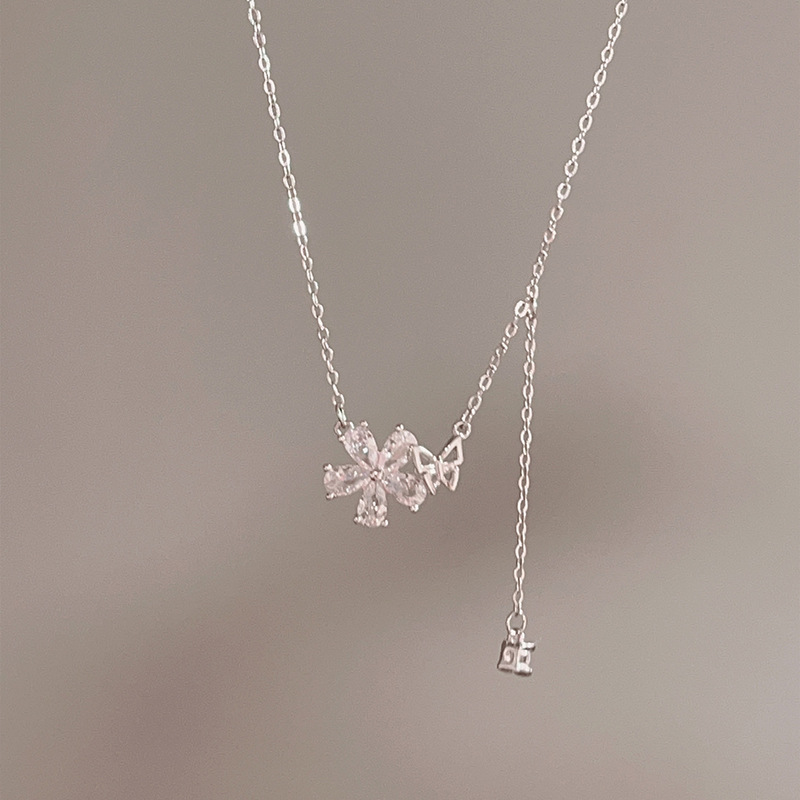 Korean fashion necklace for women, flower and butterfly, small fresh and sweet jewelry, exquisite temperament, pastoral style necklace
