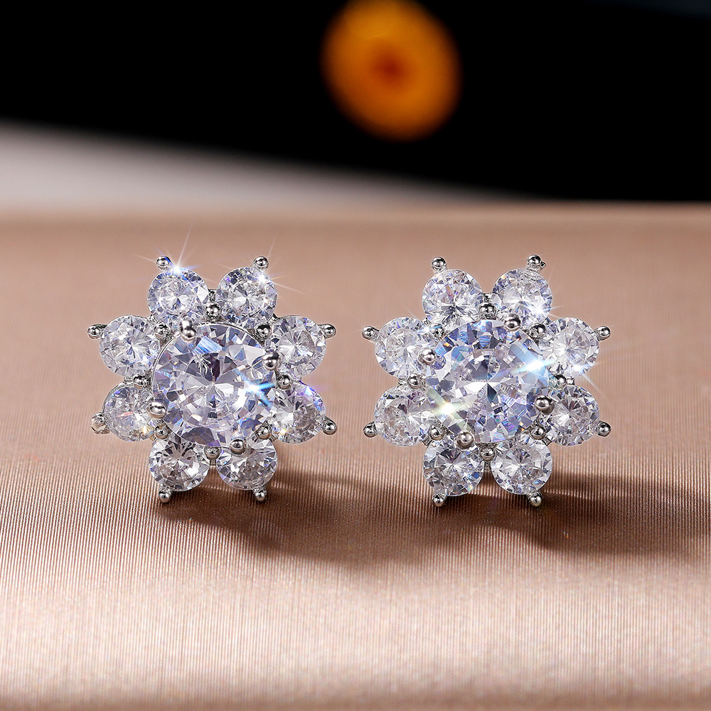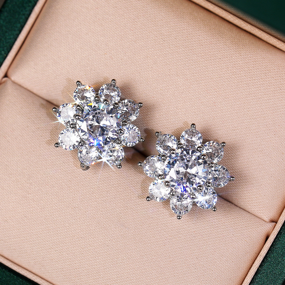 Korean fashion necklace temperament snowflake zircon jewelry set all-match flower student accessories three-piece set