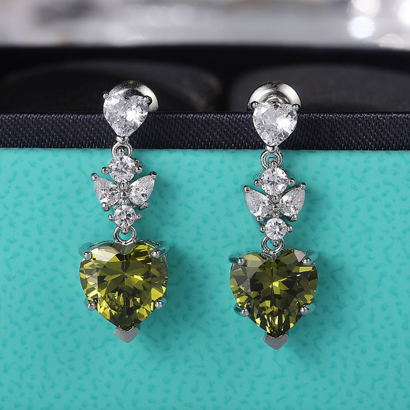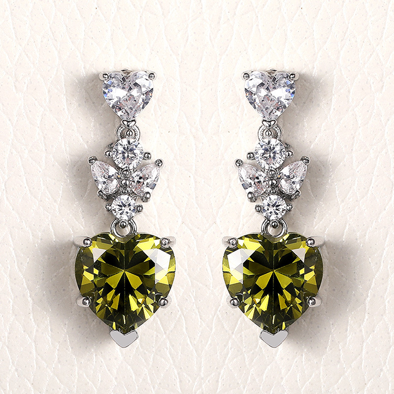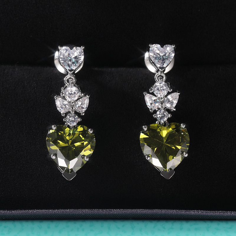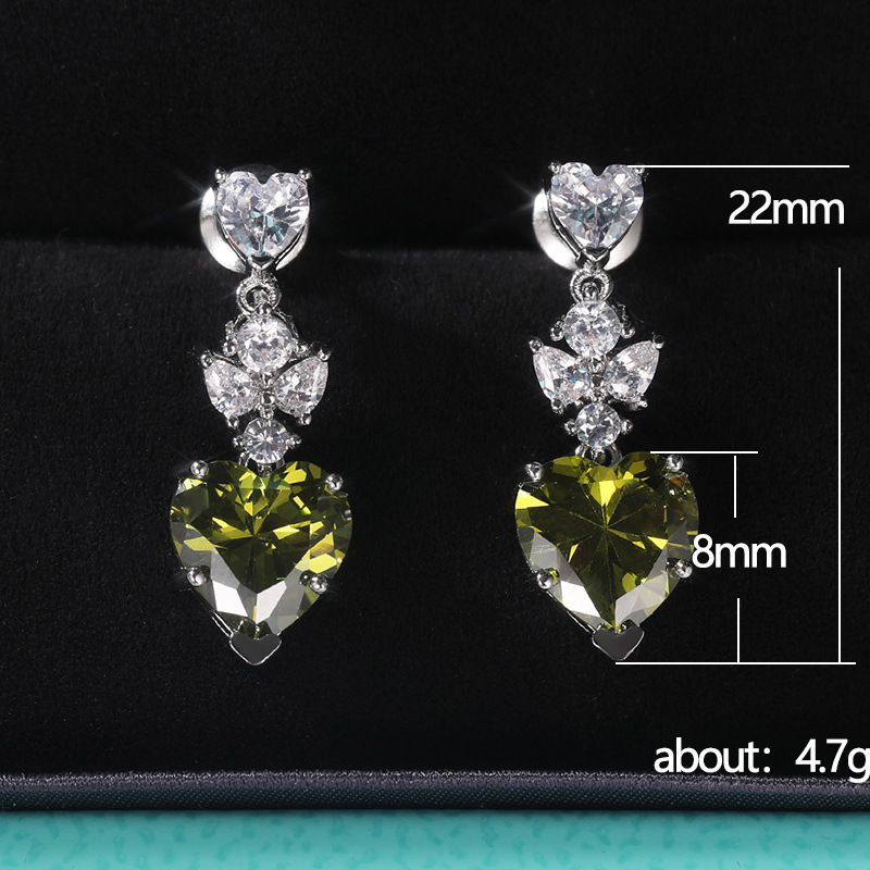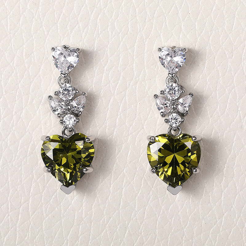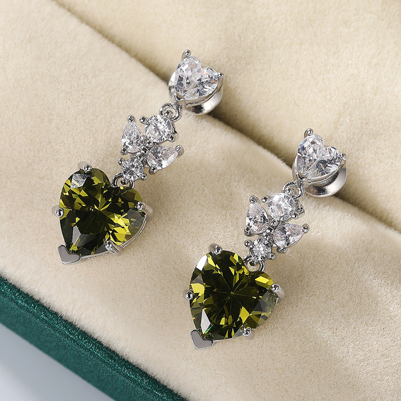 Korean fashion OL earrings simple olive green heart-shaped zircon earrings for girlfriend's birthday gift accessories