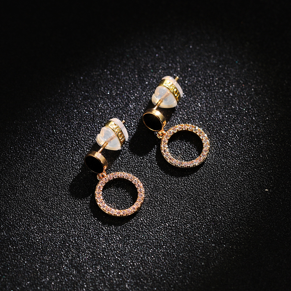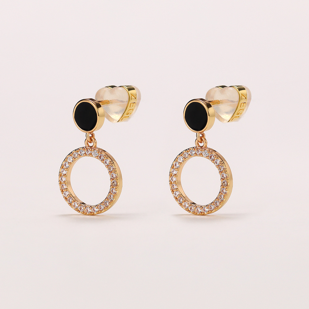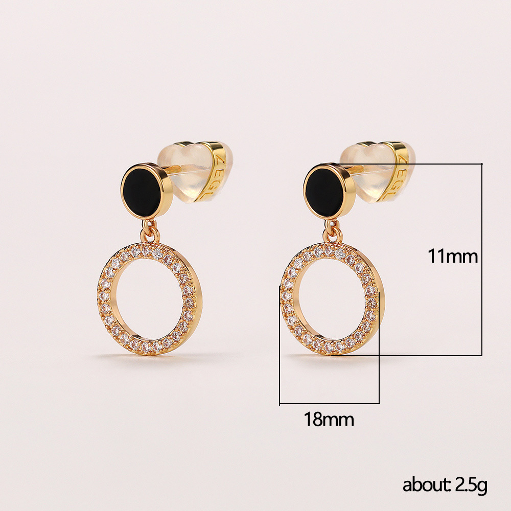 Korean fashion simple earrings black disc geometric hollow circle earrings for women micro-inlaid zircon earrings