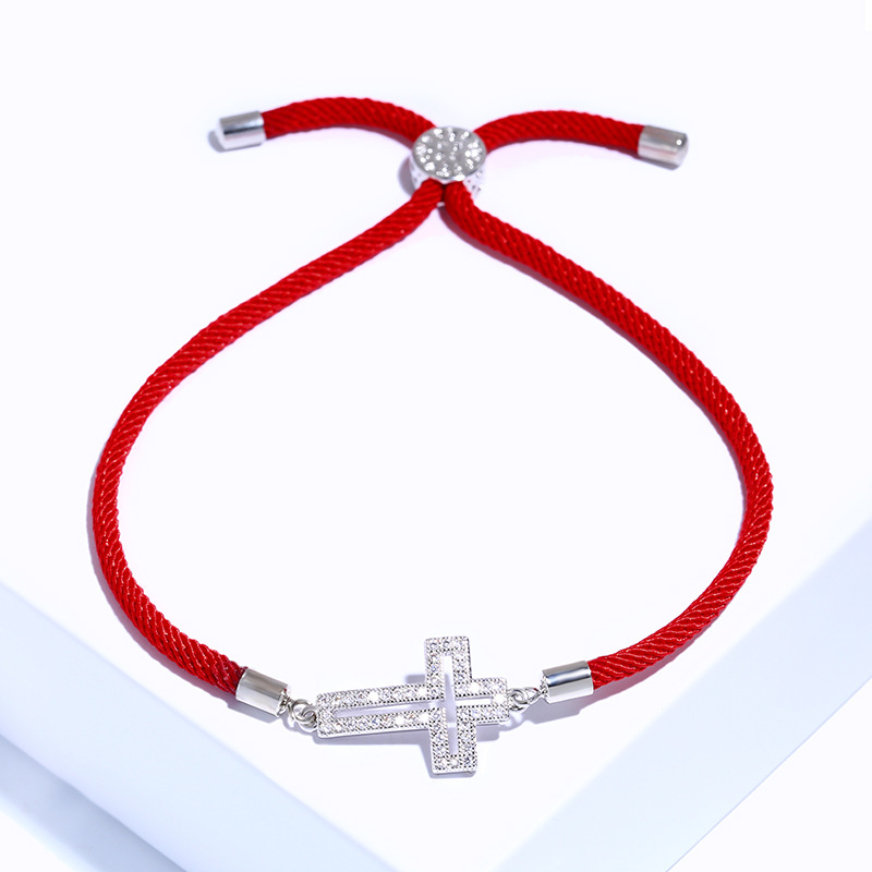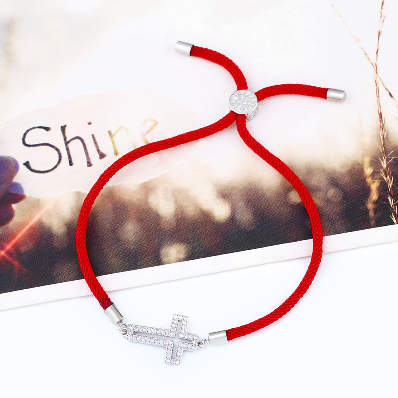Korean fashion simple exquisite cross red rope bracelet adjustable couple zircon bracelet jewelry bra65