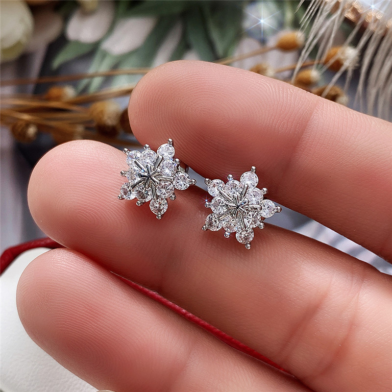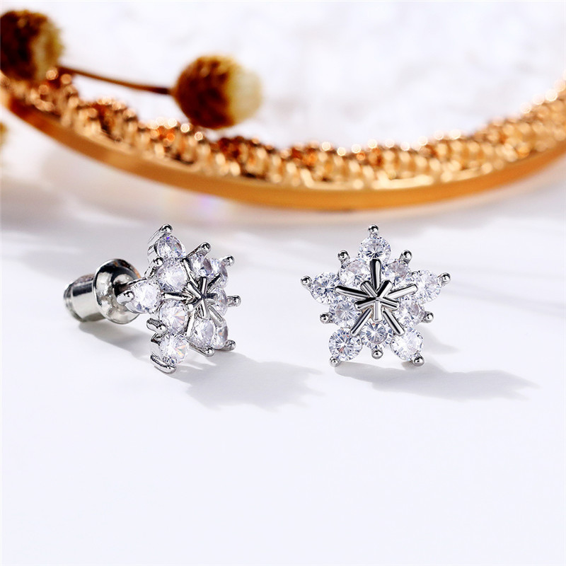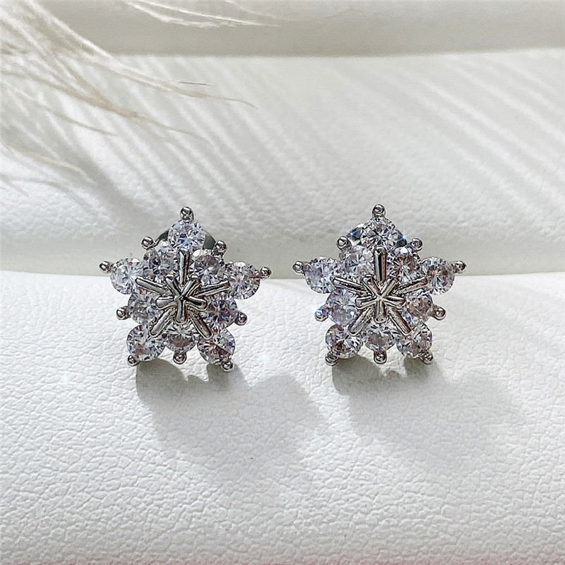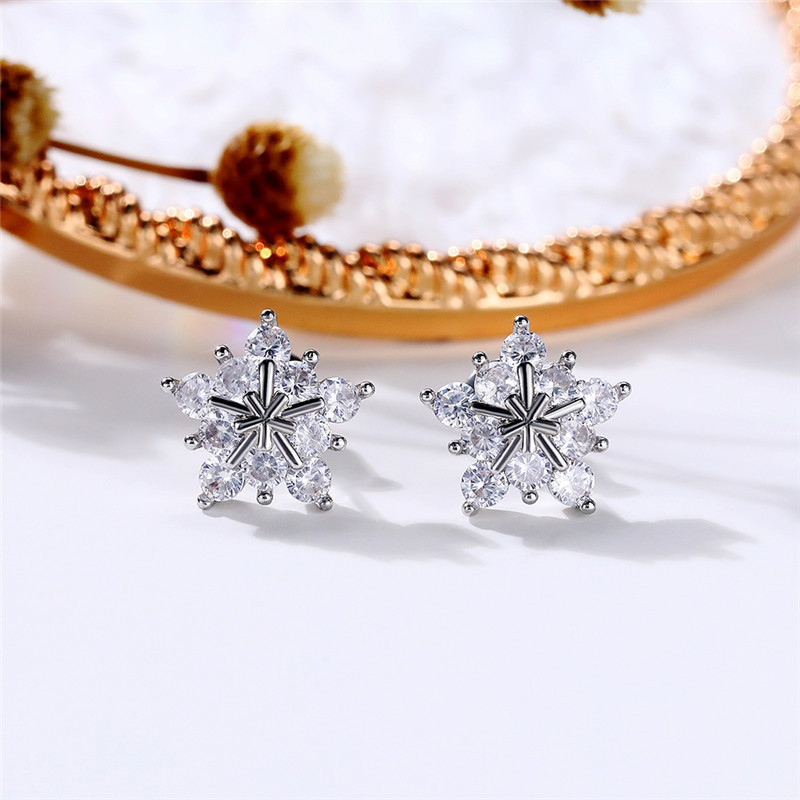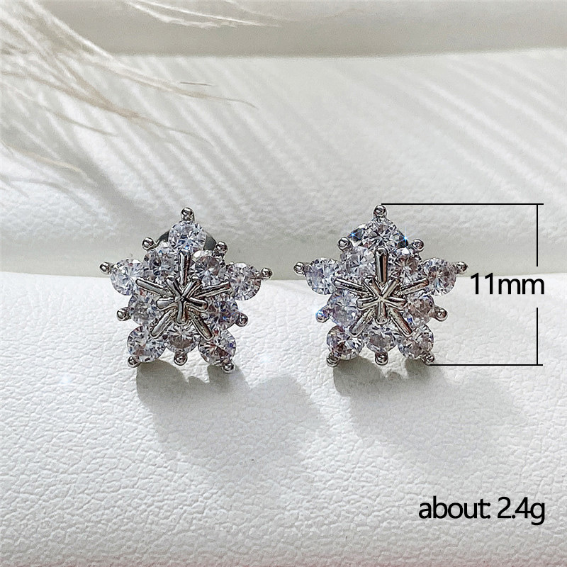 Korean fashion zircon snowflake earrings full of diamond five-pointed star Christmas earrings exquisite and compact versatile accessories
