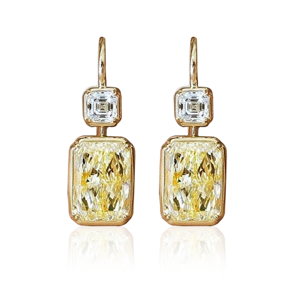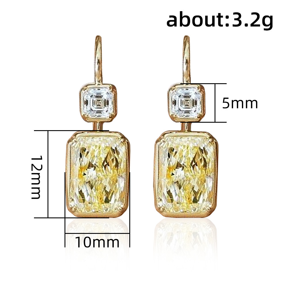 Korean high-end colored gemstone earrings, Internet celebrity style yellow diamond square zircon women's earrings, simple and versatile earrings