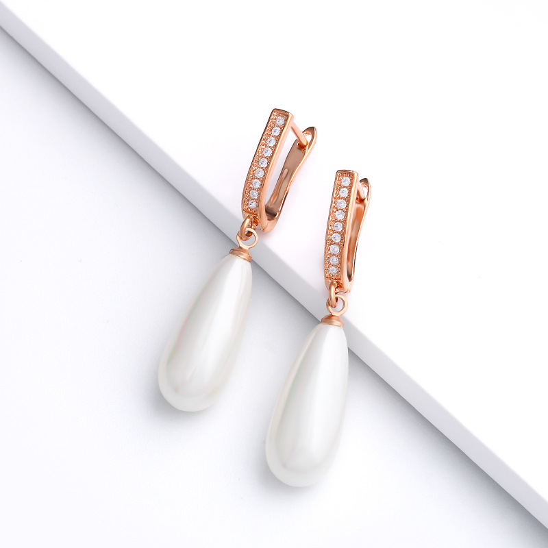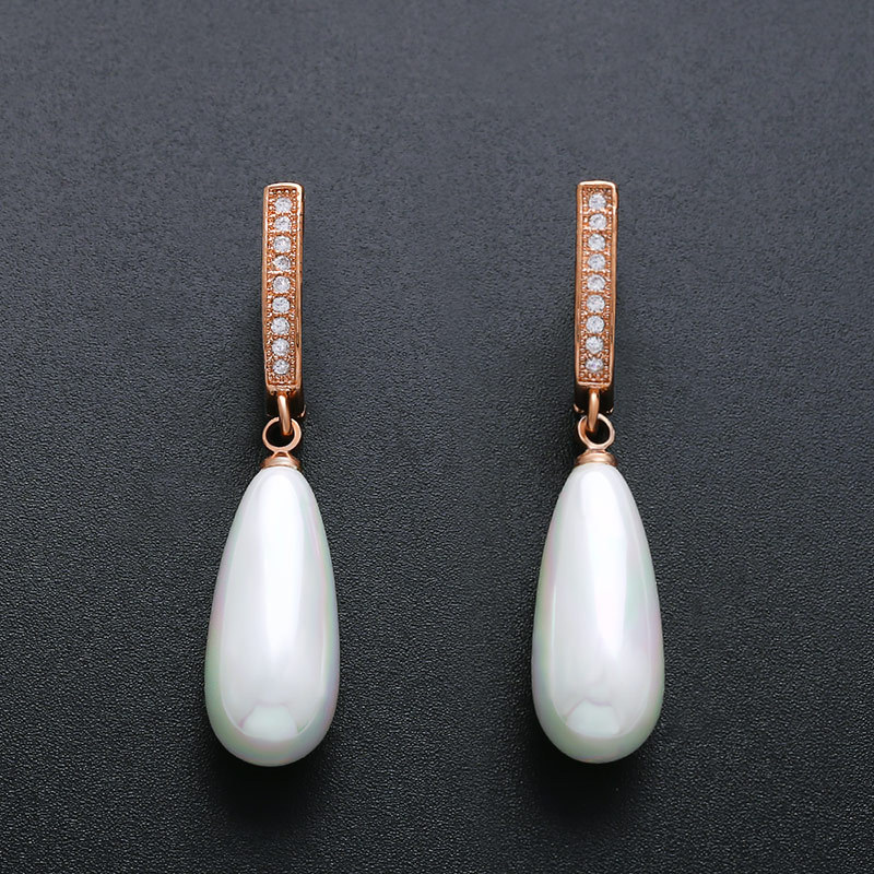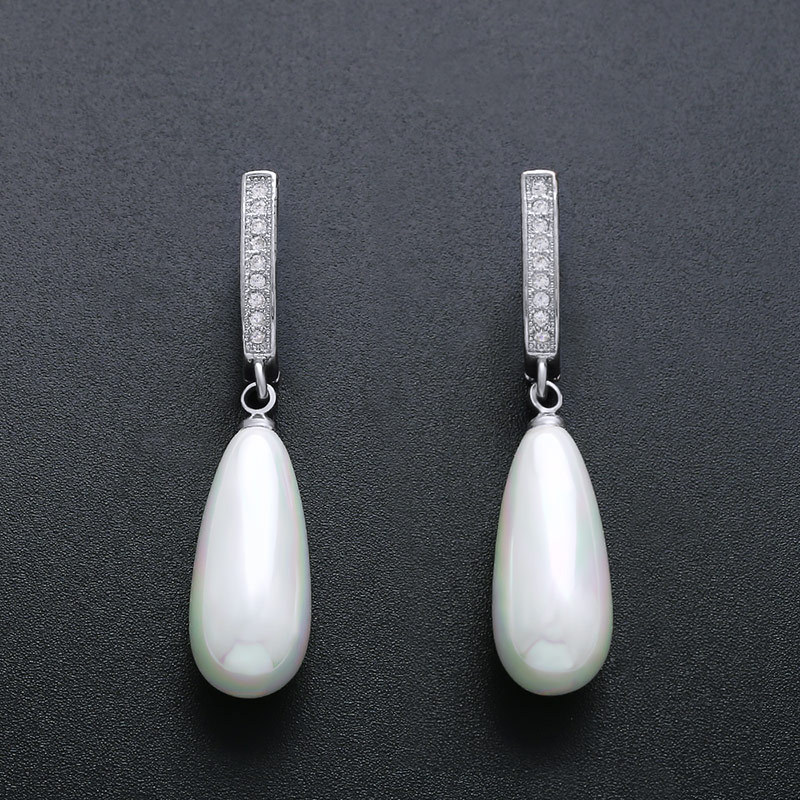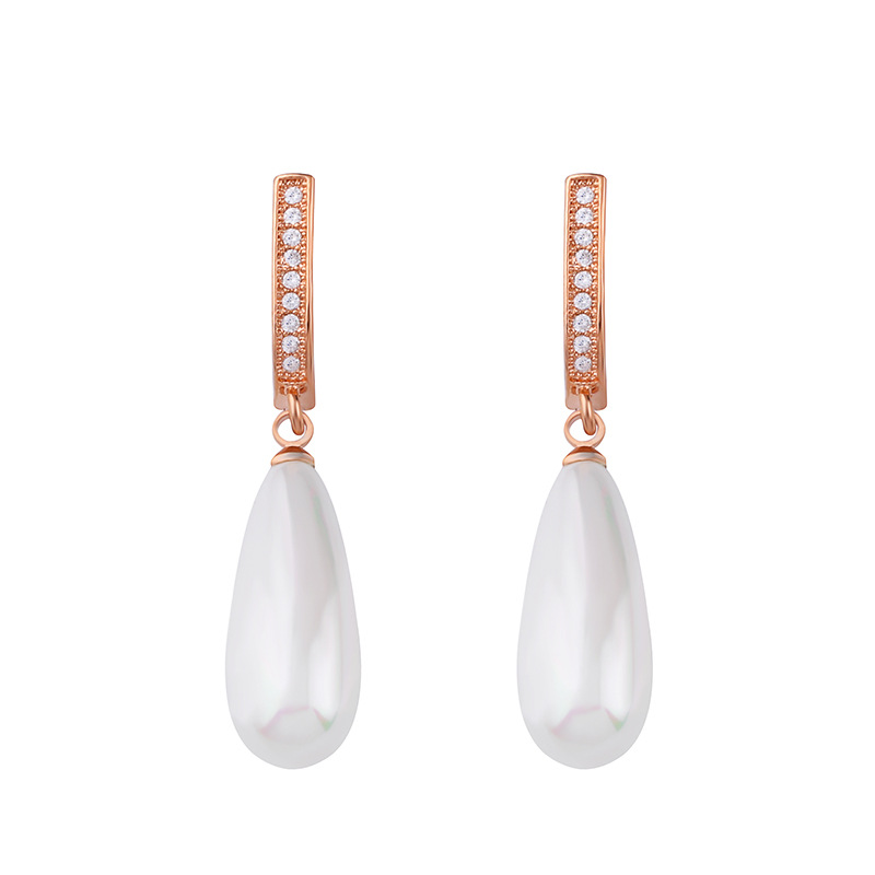 Korean jewelry simple versatile pearl earrings earrings female retro zircon diamond long earrings erp14